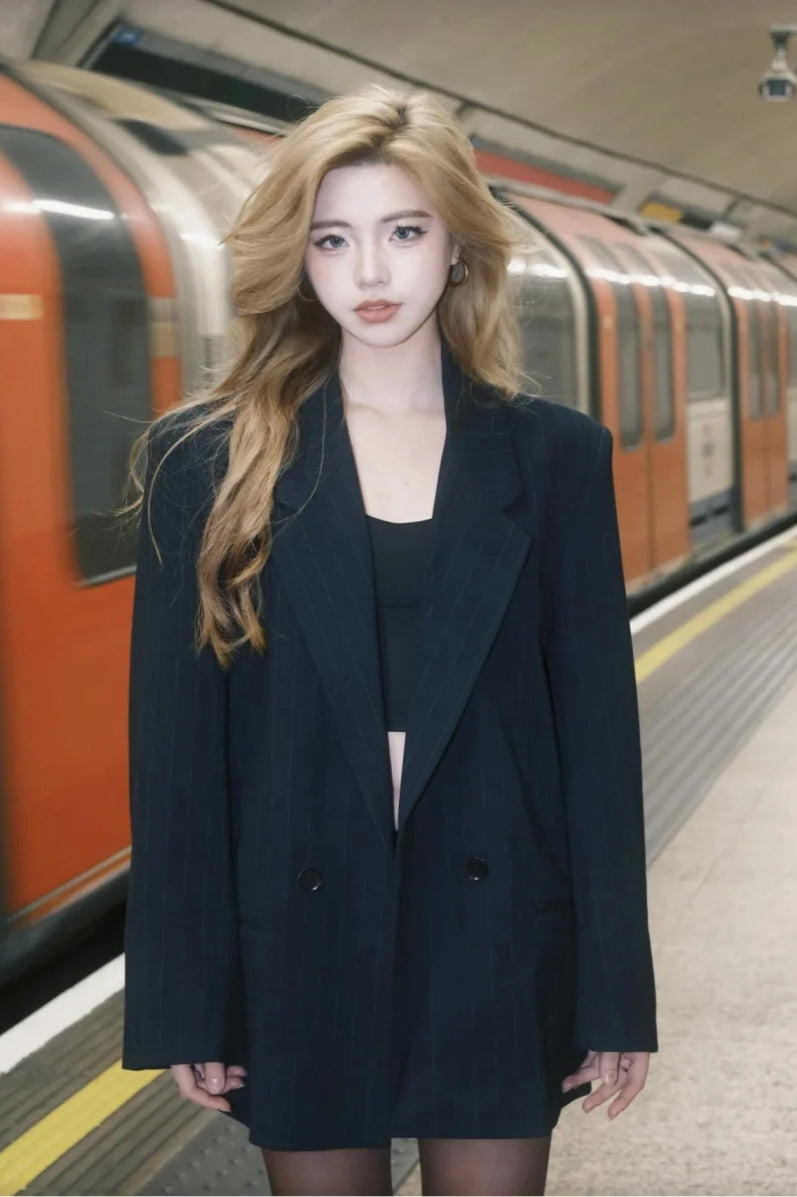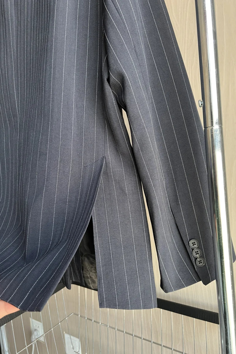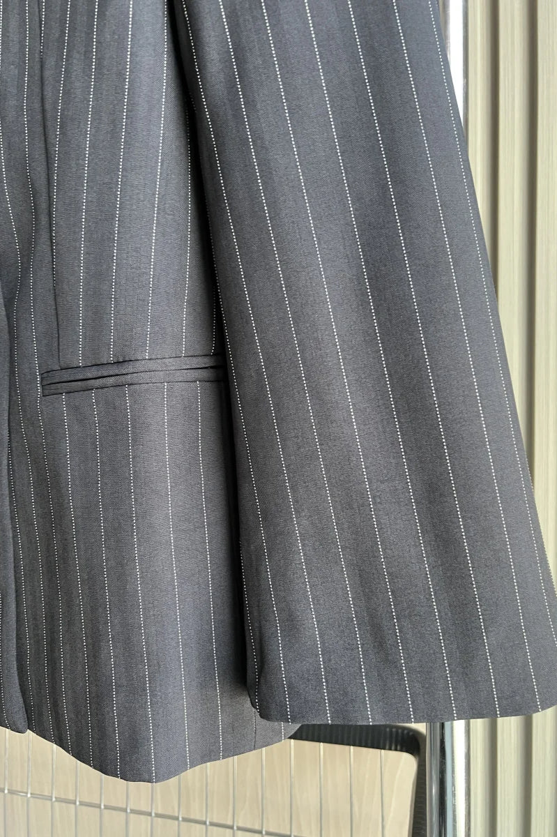 Shoulder-Padded Pinstripe Blazer