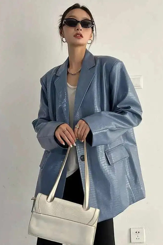 PU Leather Oversized Casual Blazer