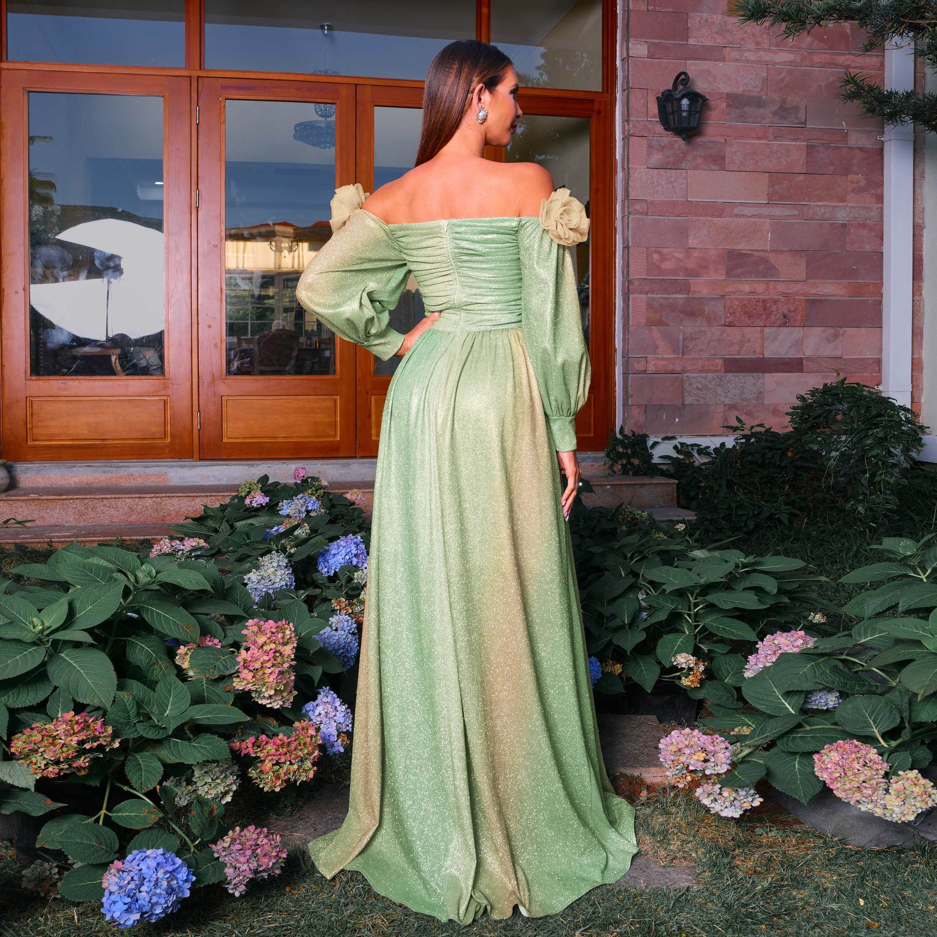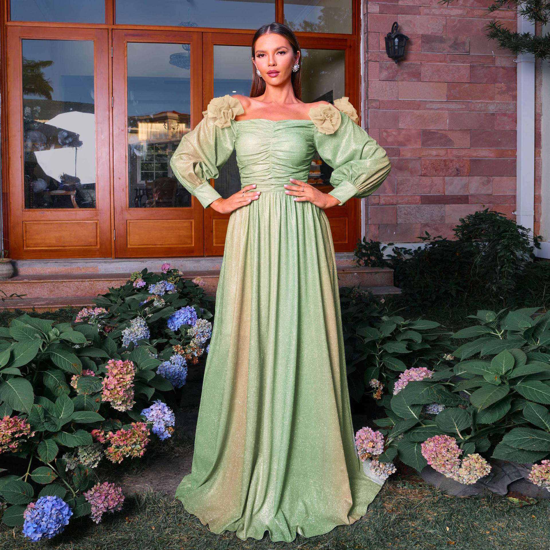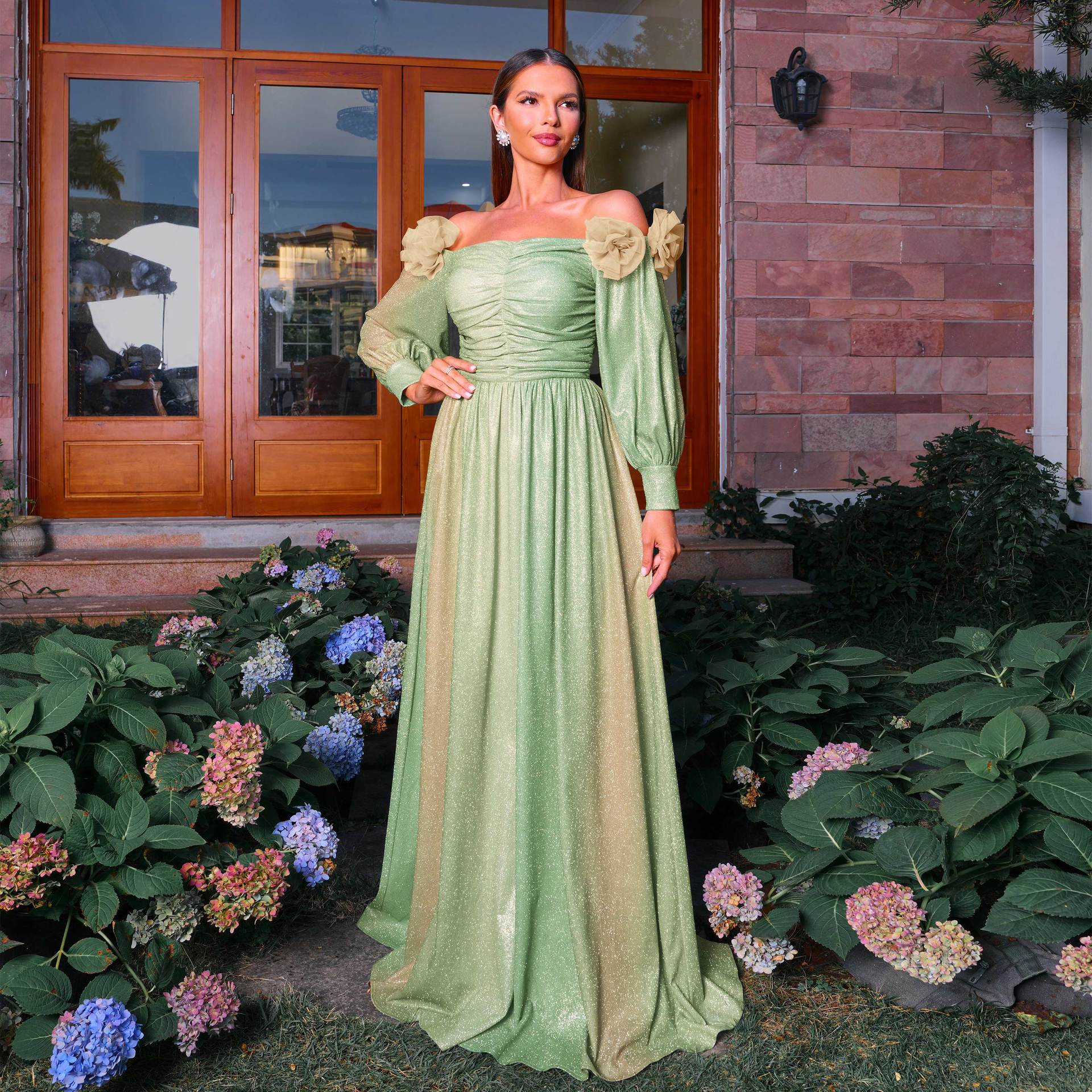 Long Sleeve Elegant Boat Neck Waist Beach Vacation Long Bohemian Large Swing