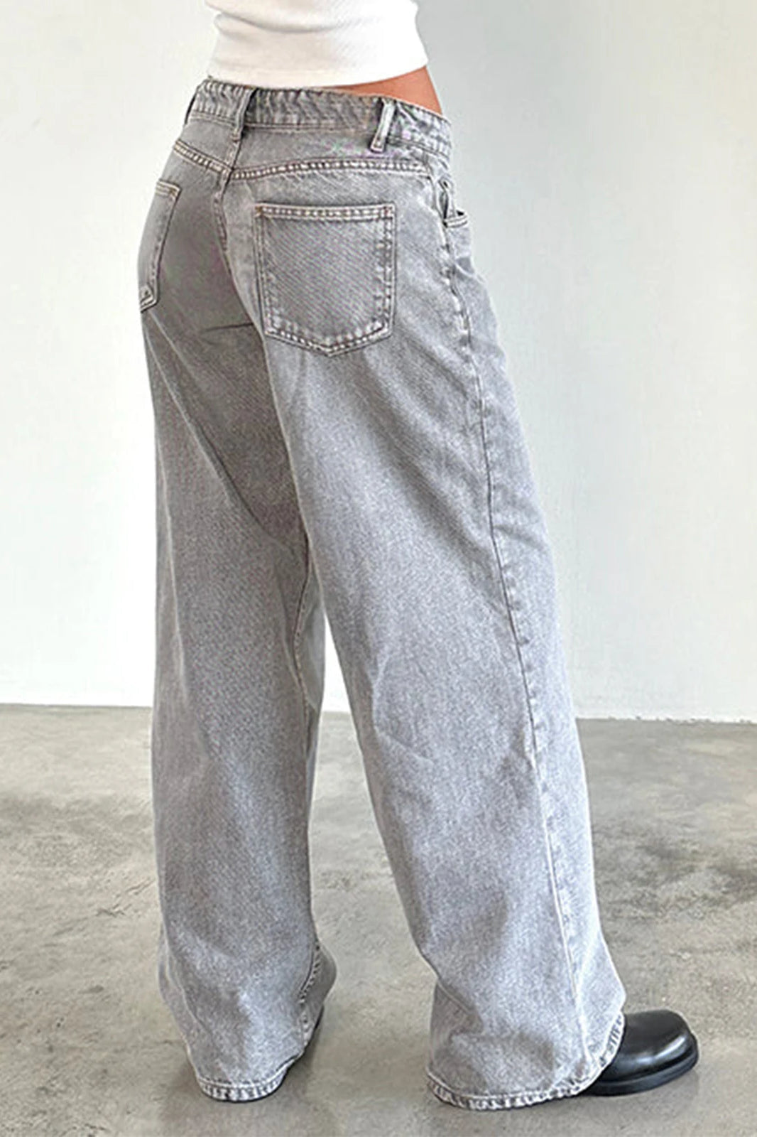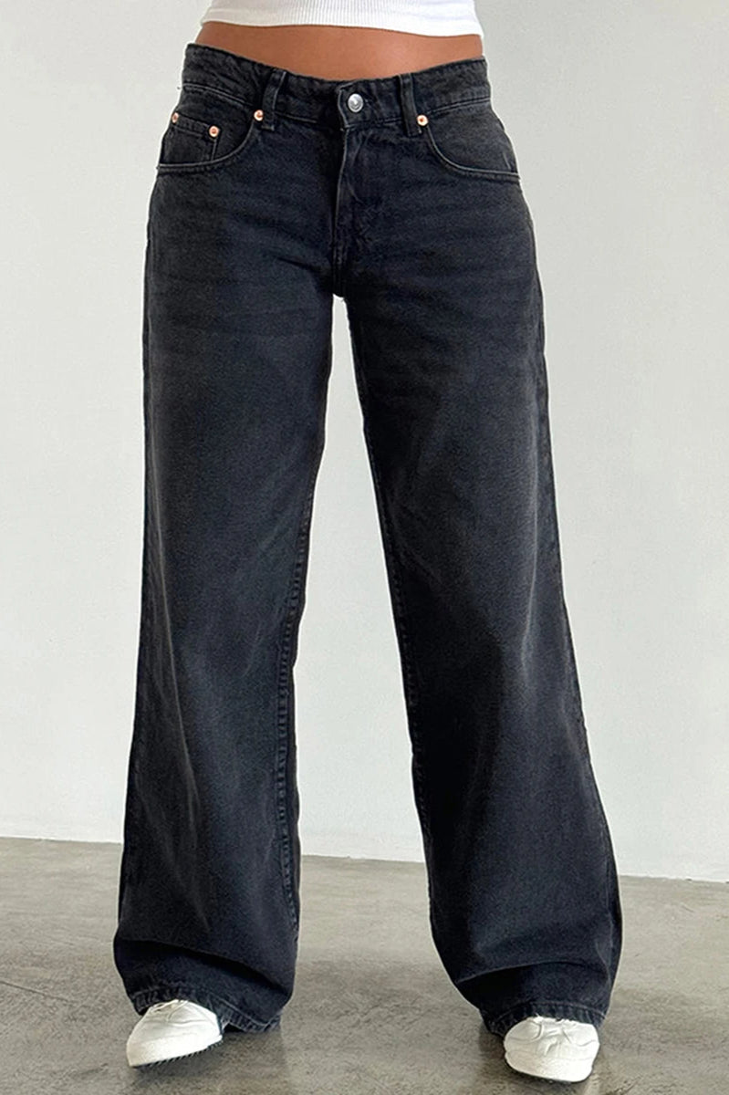 Solid Color Wide Leg Denim Jeans