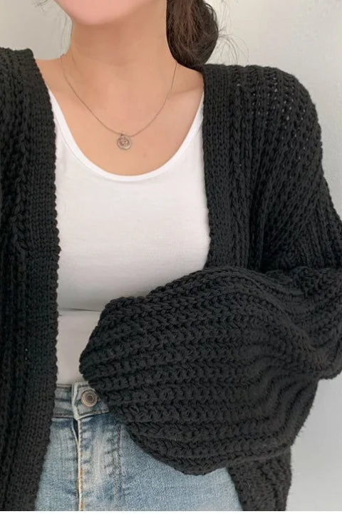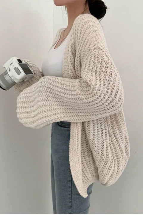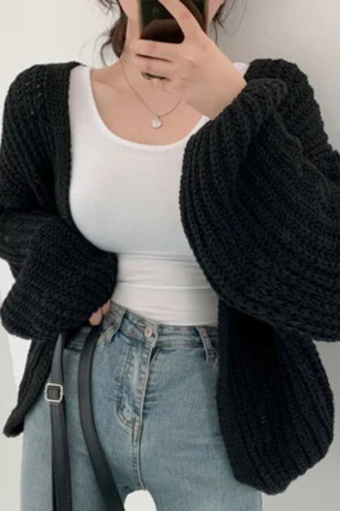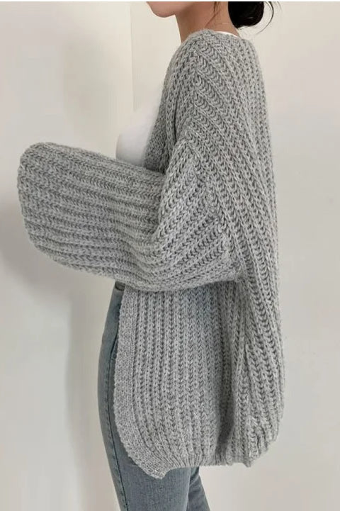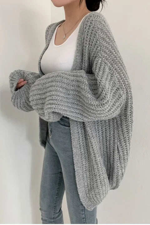 Chic Oversized Lantern Sleeve Cardigan