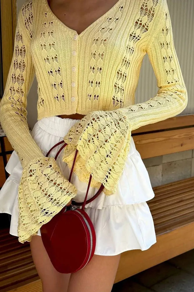 Hollow Out Knit Cropped Cardigan