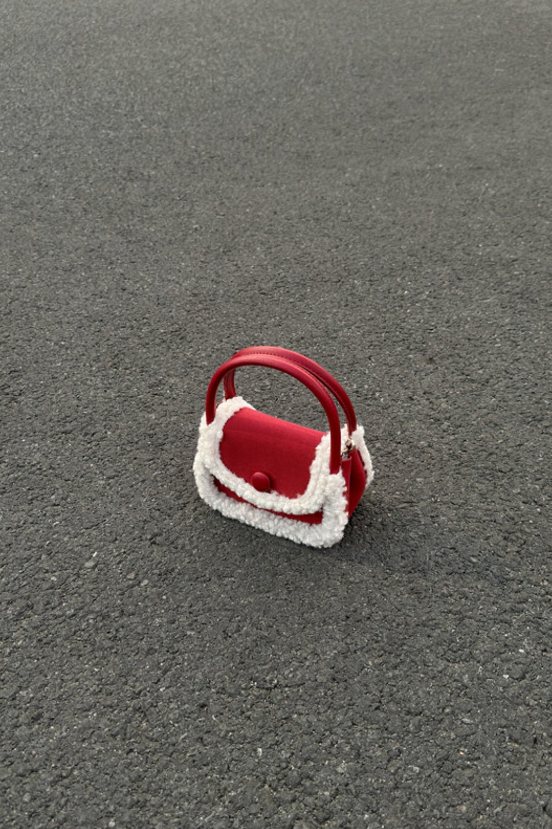 Fuzzy Red Square Mini Bag Handheld Shoulder Crossbody Bag