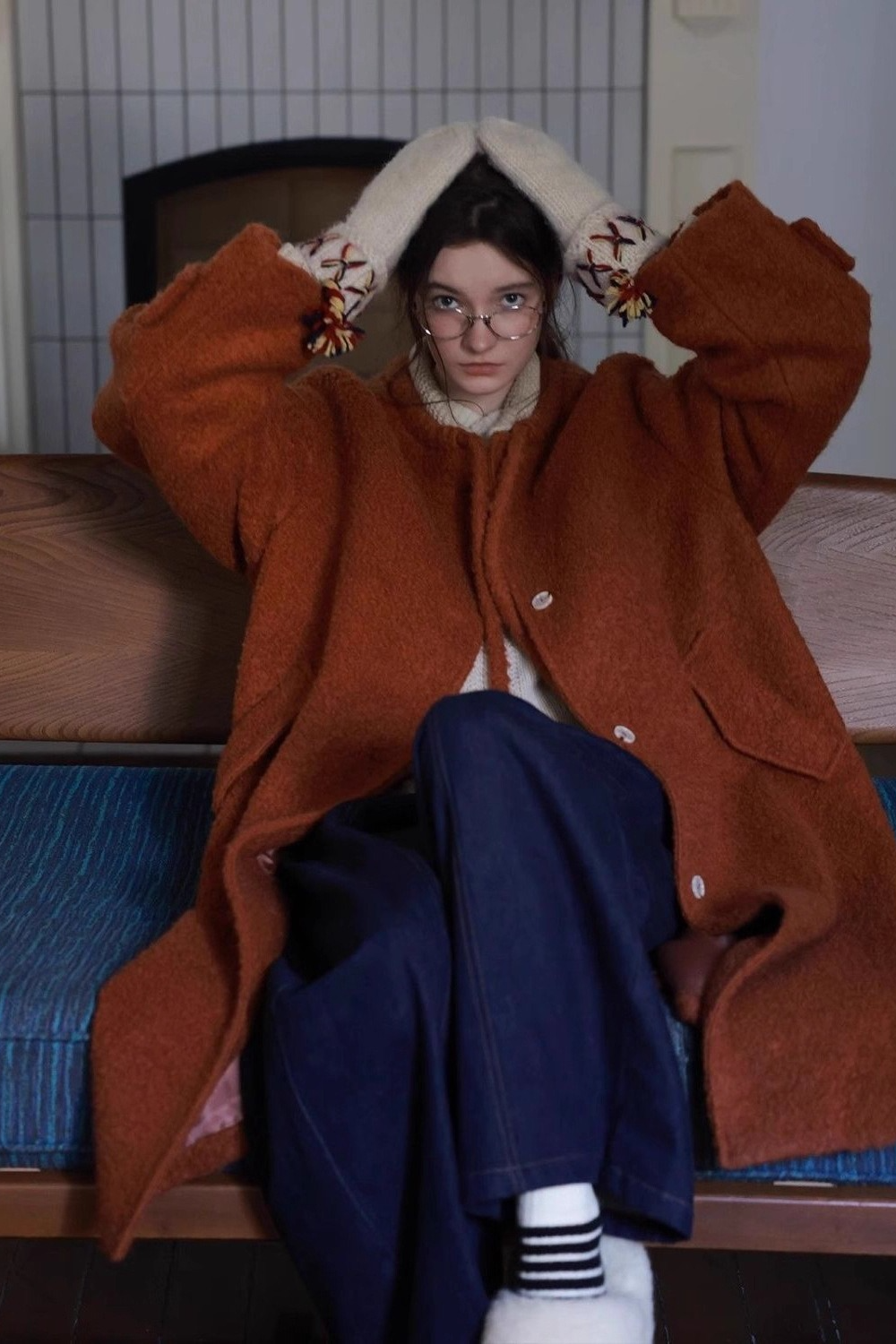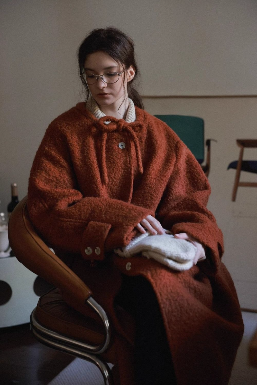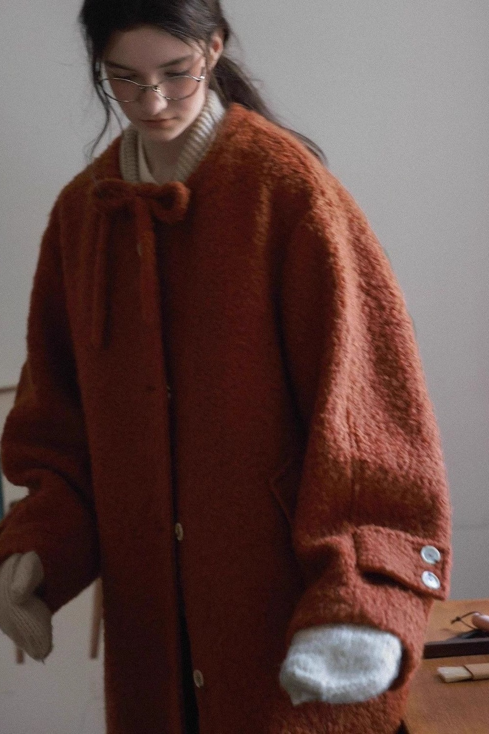 Bow Tie Waist Loose Slim Wool Blend Christmas Outerwear