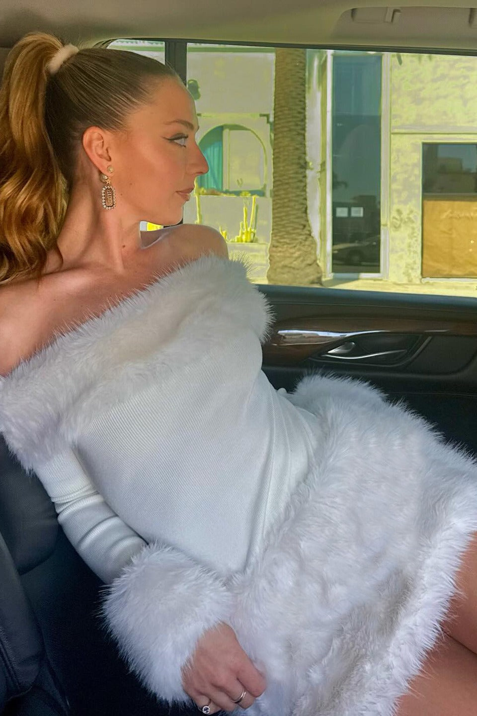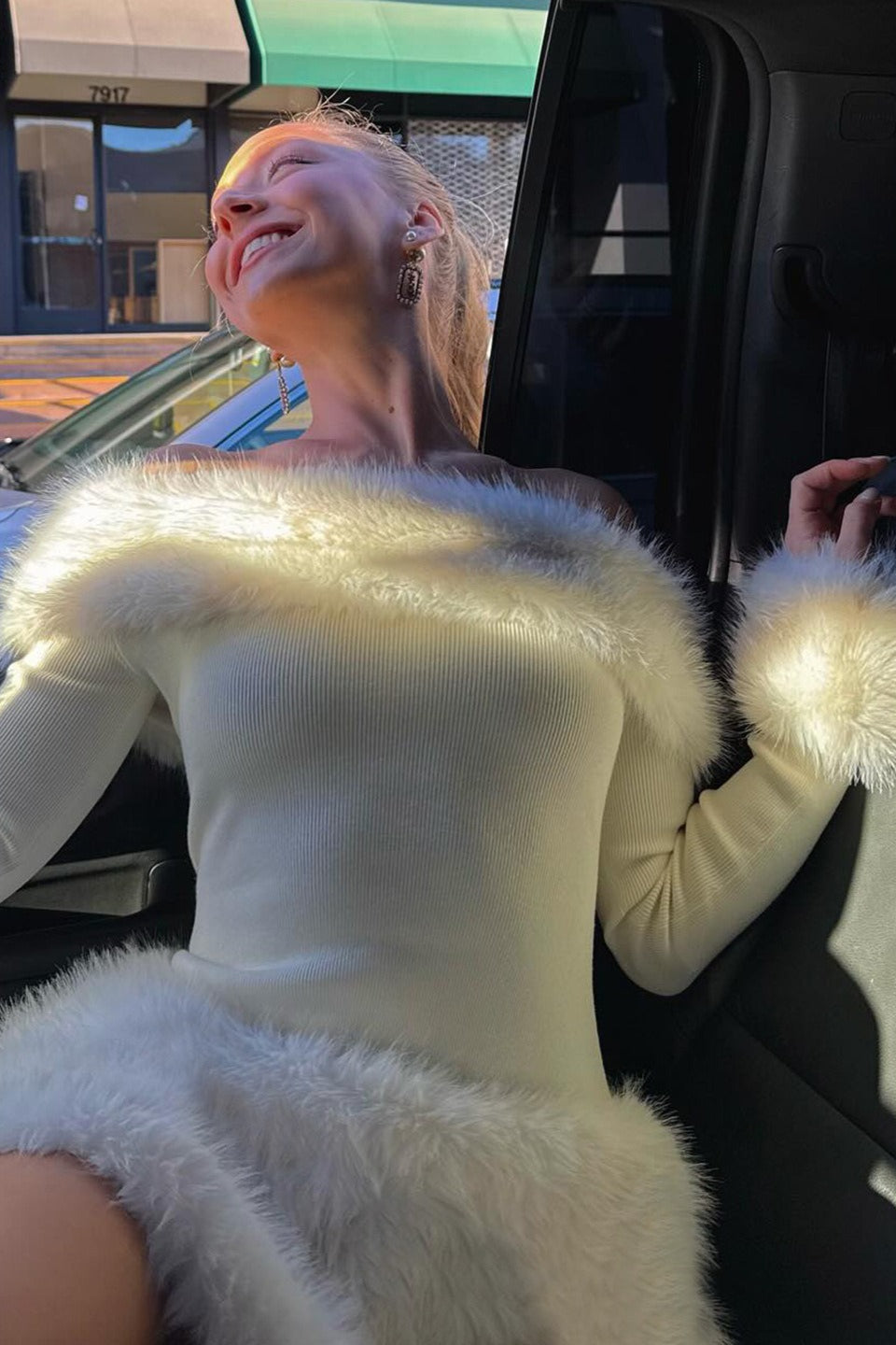 Faux Fur Trim Off-The-Shoulder Bodycon Mini Dress