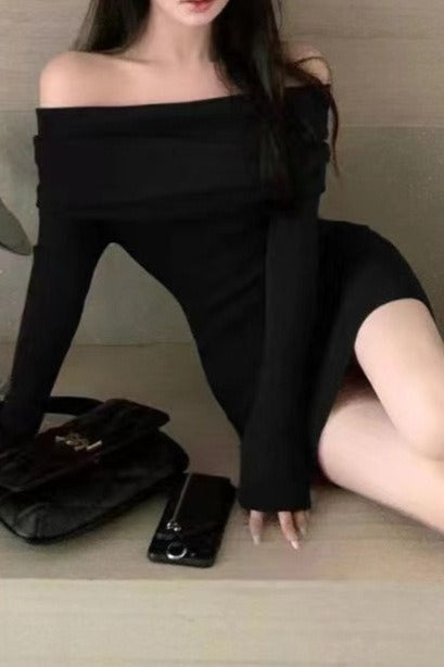 Bardot Long Sleeve Knit Waist Fitted Bodycon Sweater Dress