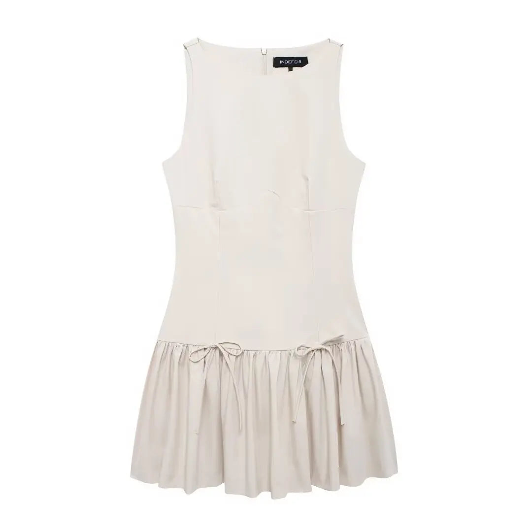 Bow Crew Neck Sleeveless Mini Dress