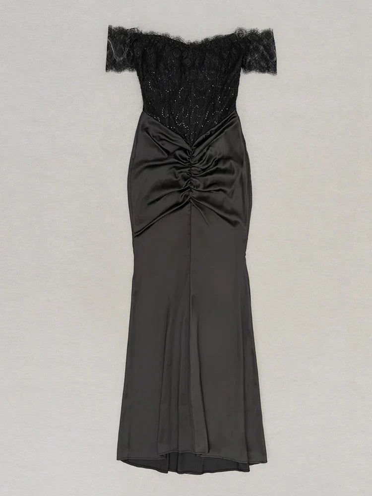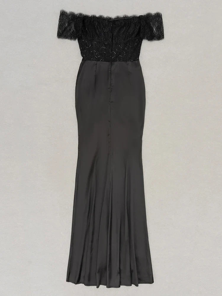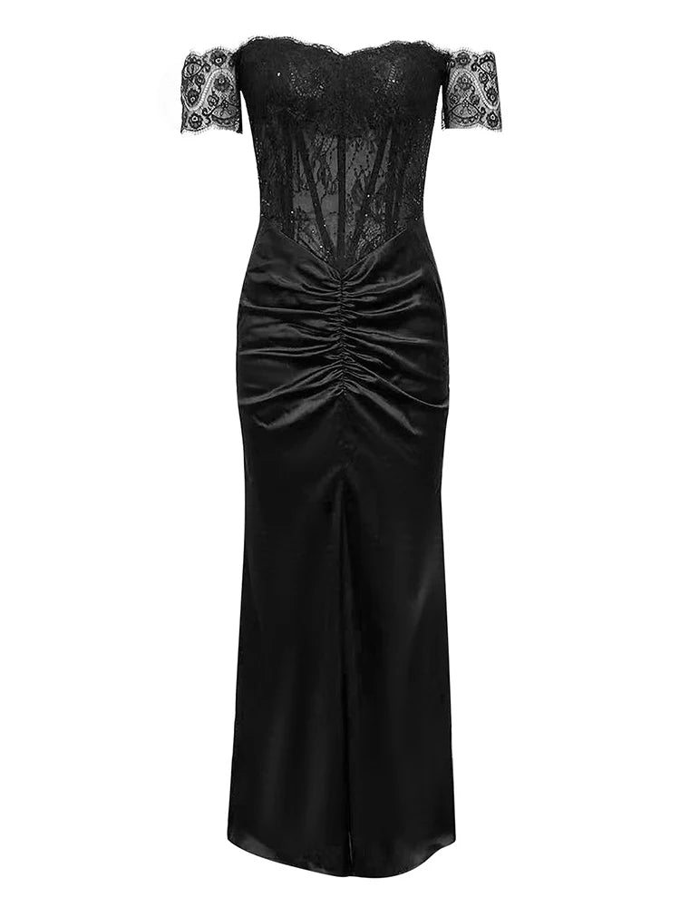 Lace Patchwork Black Short Sleeve Dress