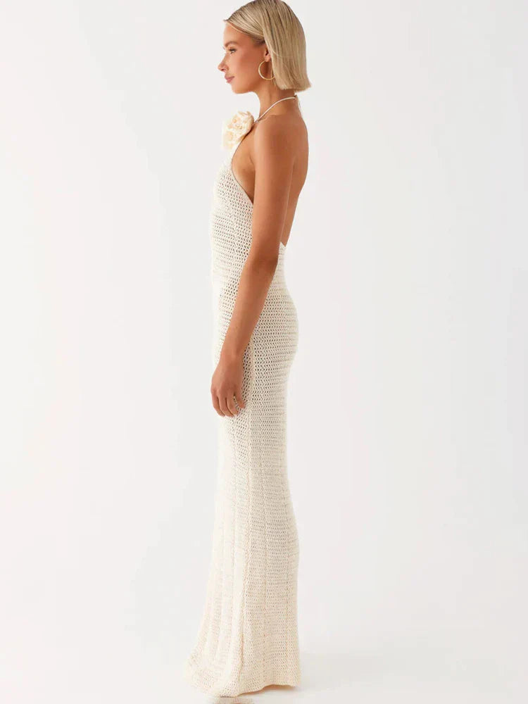 Knitted Crochet Slim Halter Beachwear Cover-Up Dress