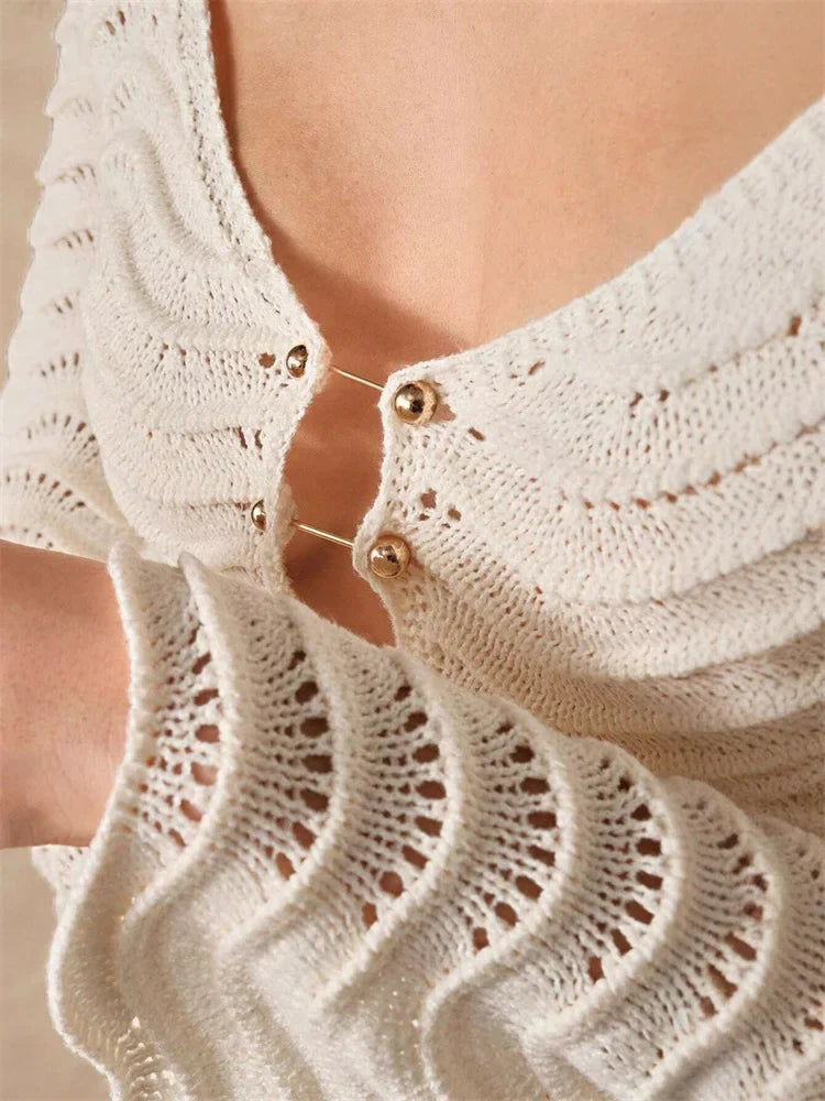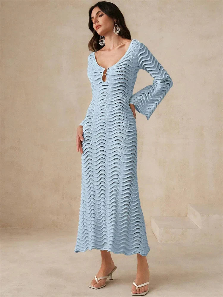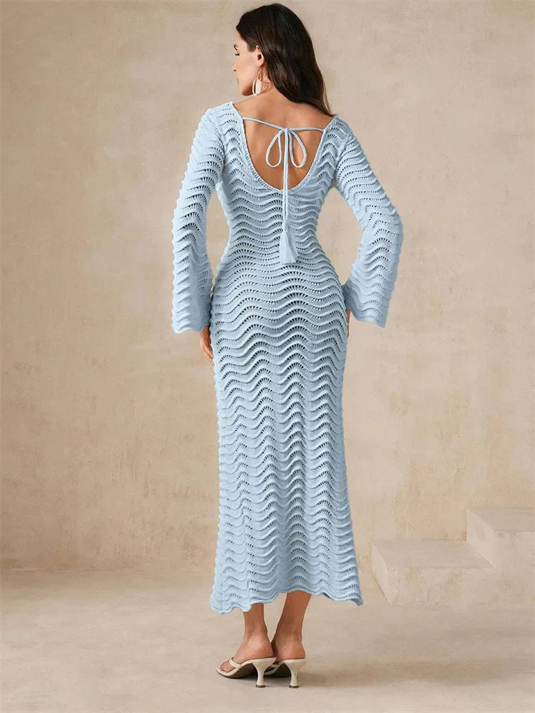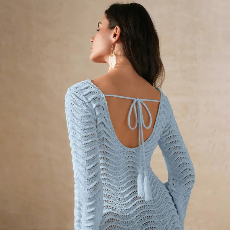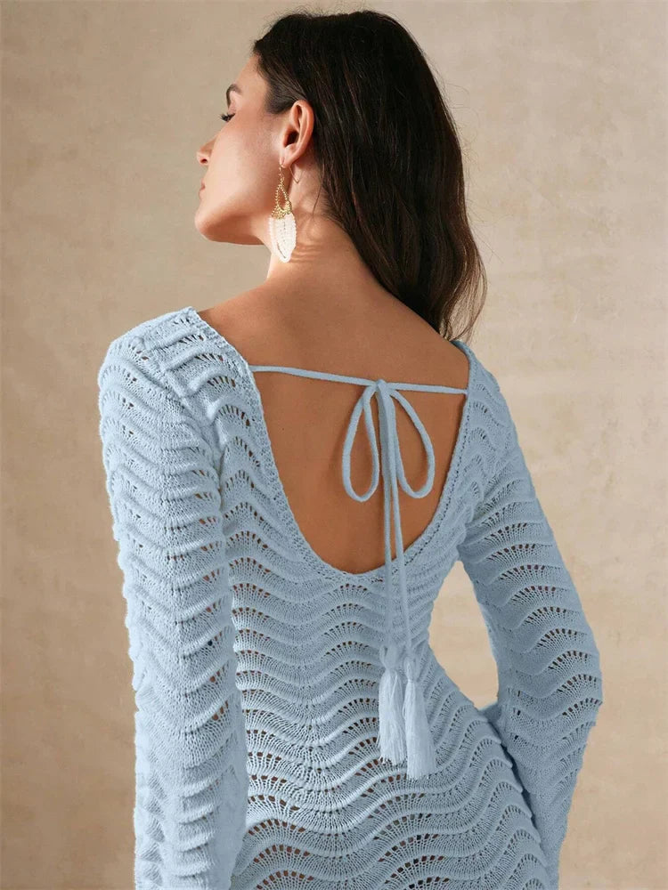Knit Hollow-Out Loose Patchwork Lace-Up Summer Dress