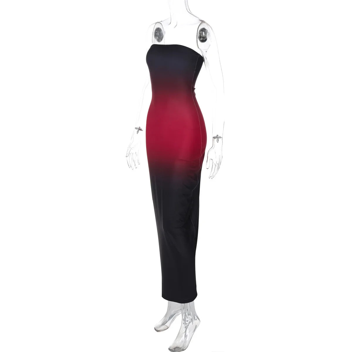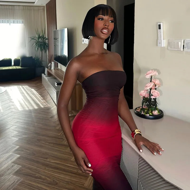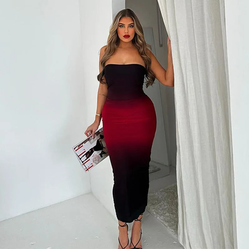 Strapless Black-Red Gradient Long Dress