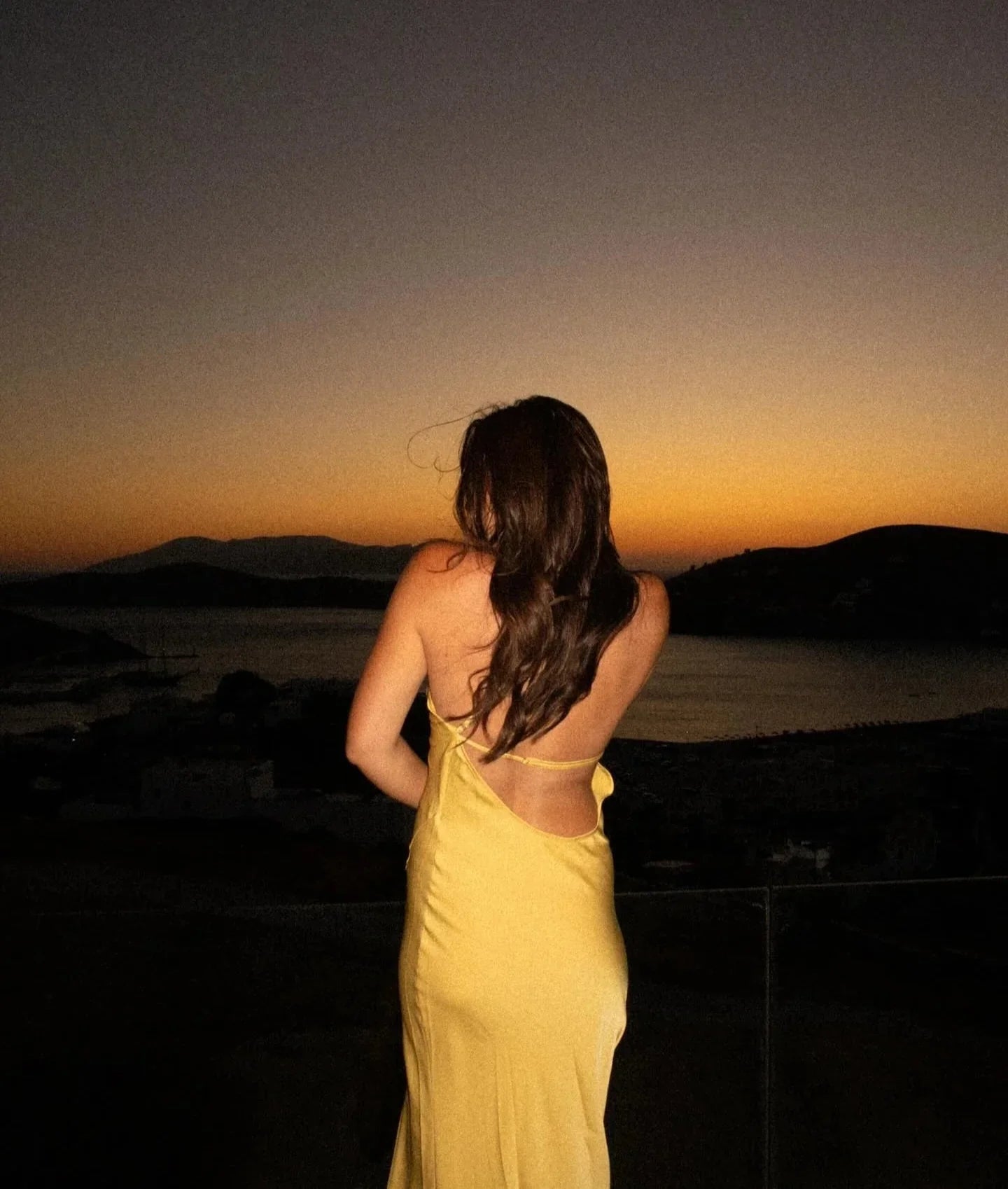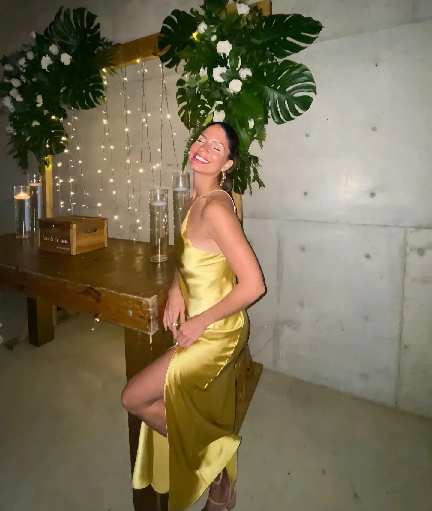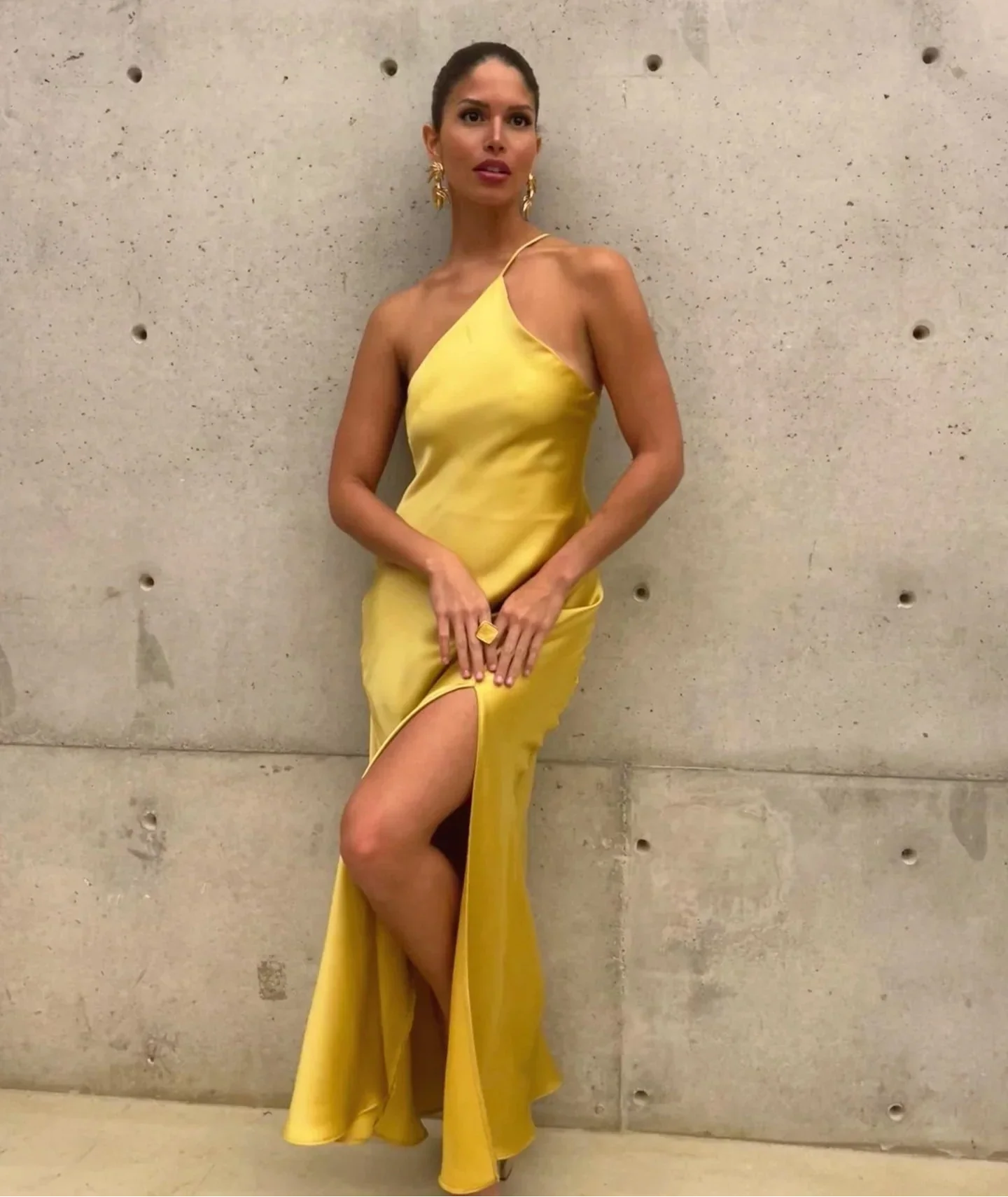 Backless Satin Slant Shoulder Solid Slit Long Dress