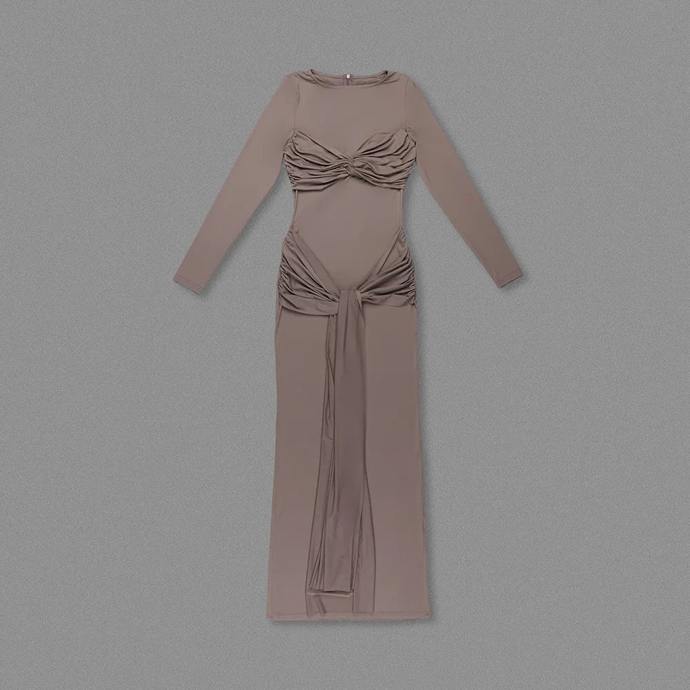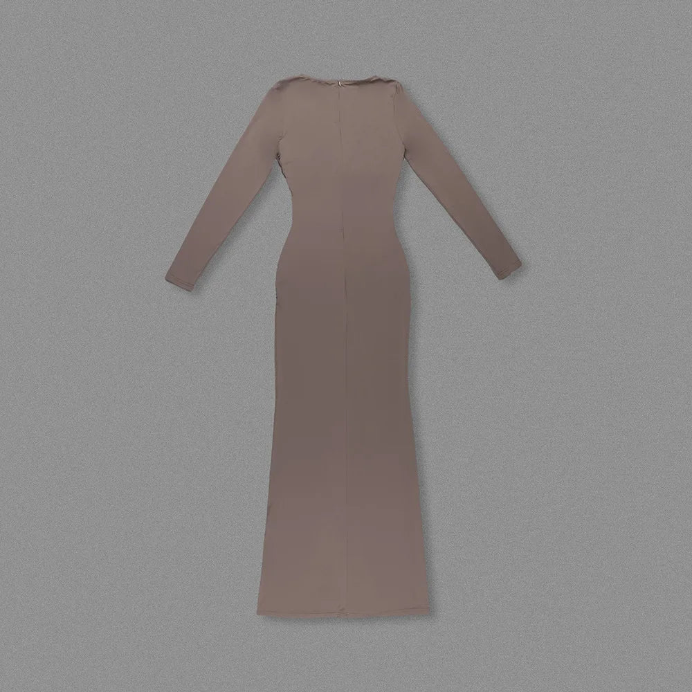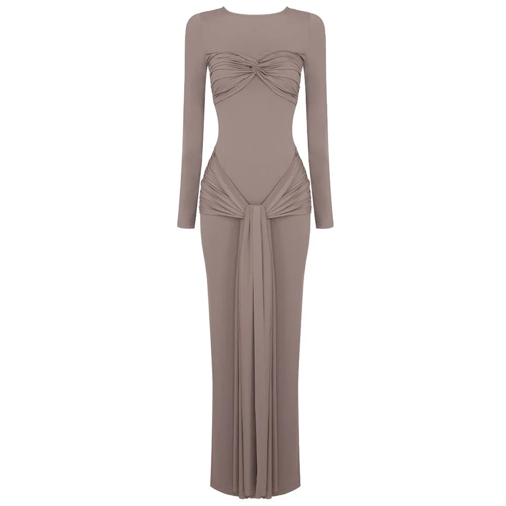 O-neck Long Sleeve Robe fashion Maxi Dress
