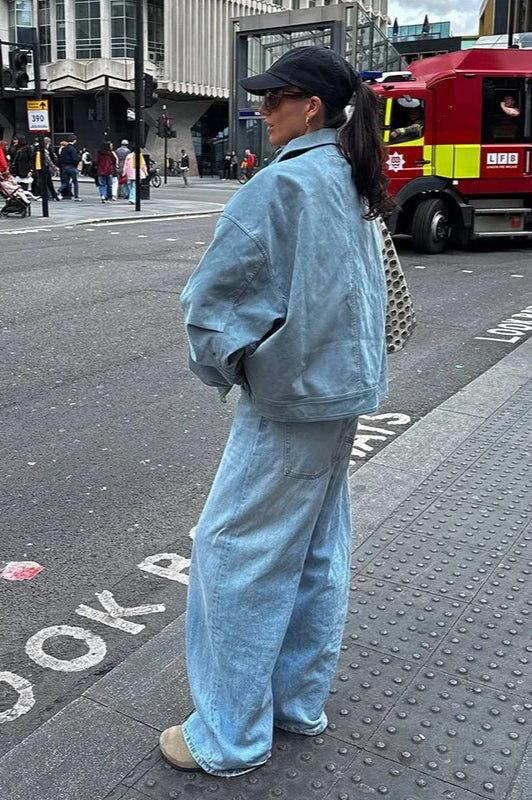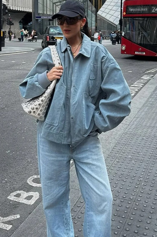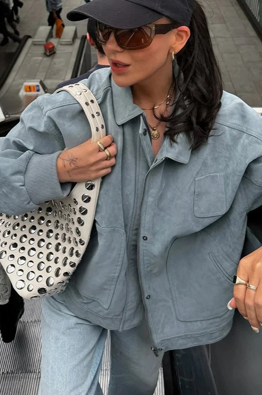 Blue Zip Lapel Jacket