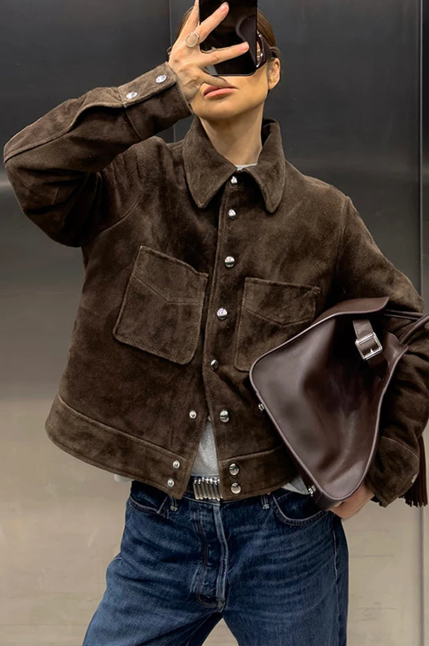 Single-Breasted Suede Jacket
