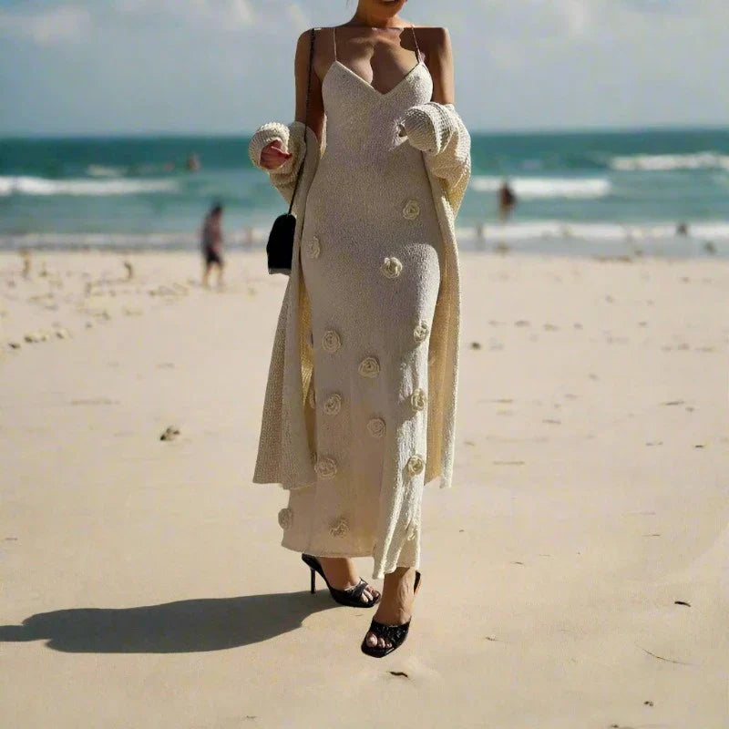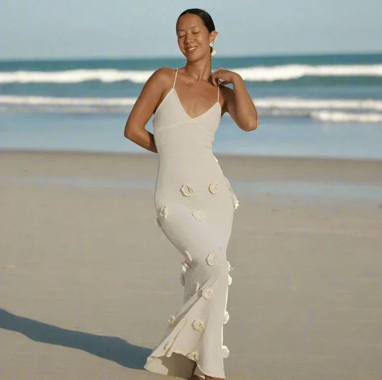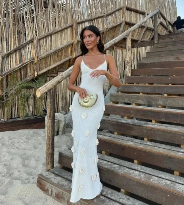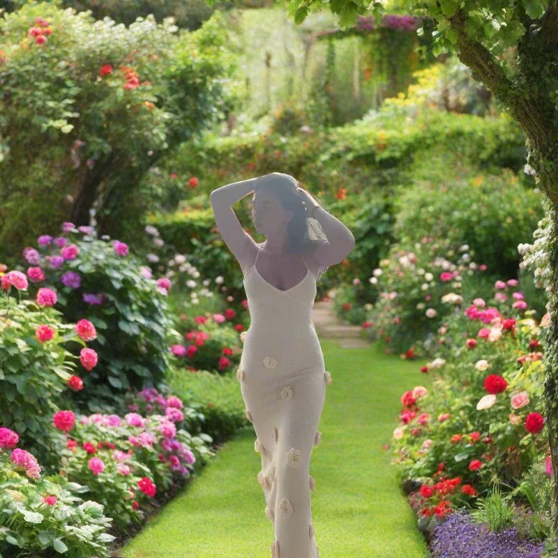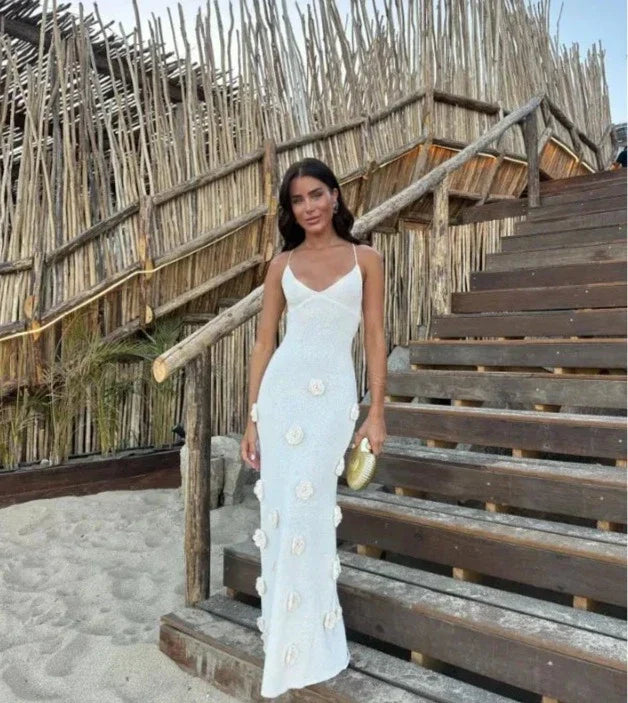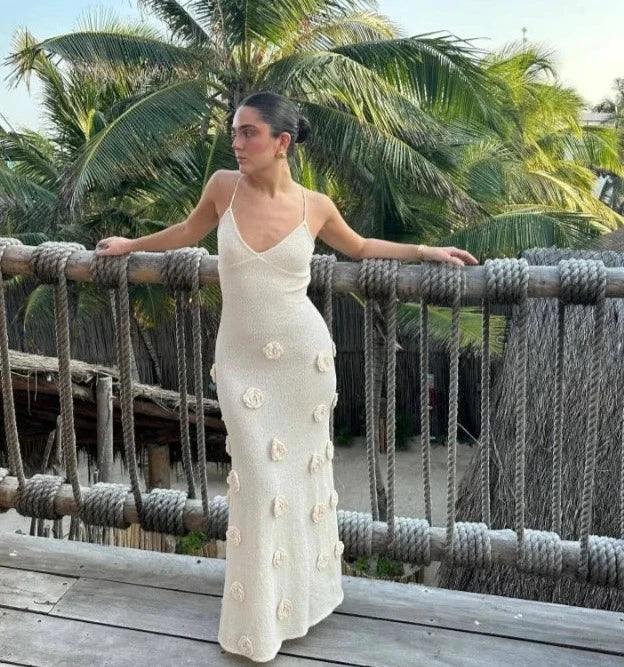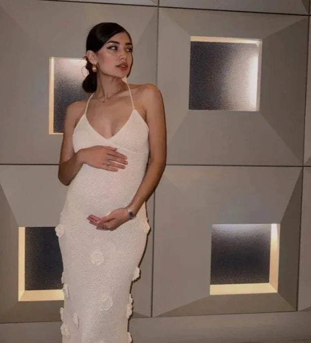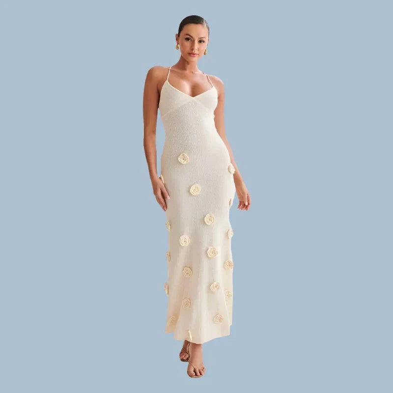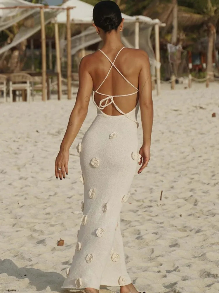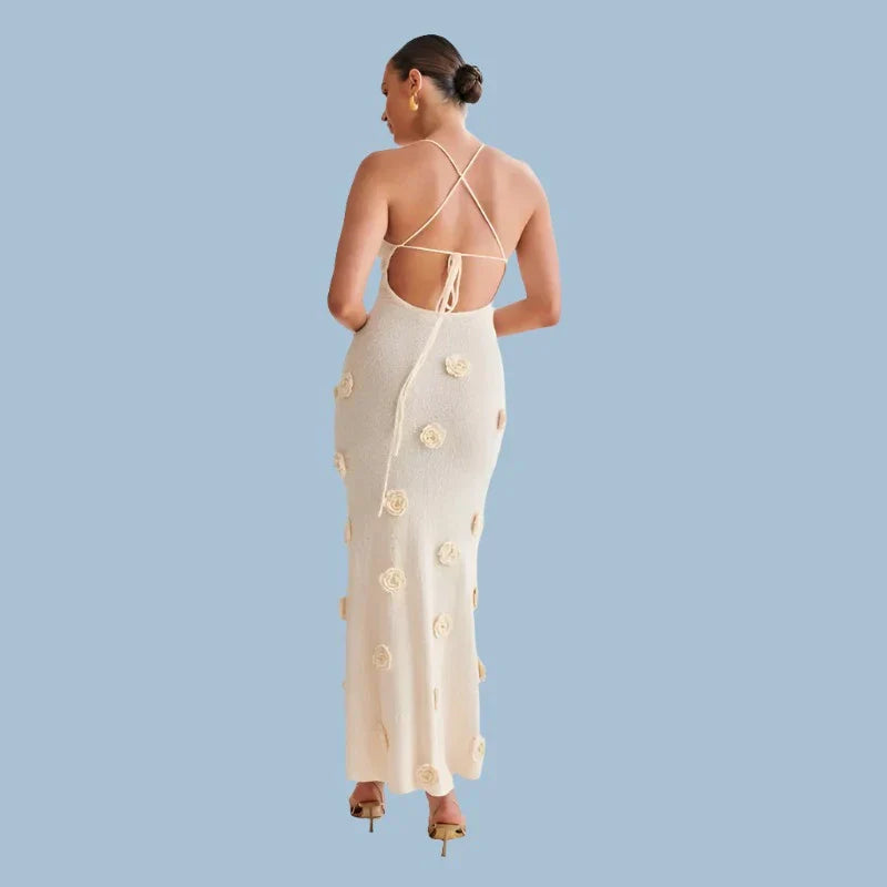 Halter Neck Flower Patchwork Lace-up Maxi Dress