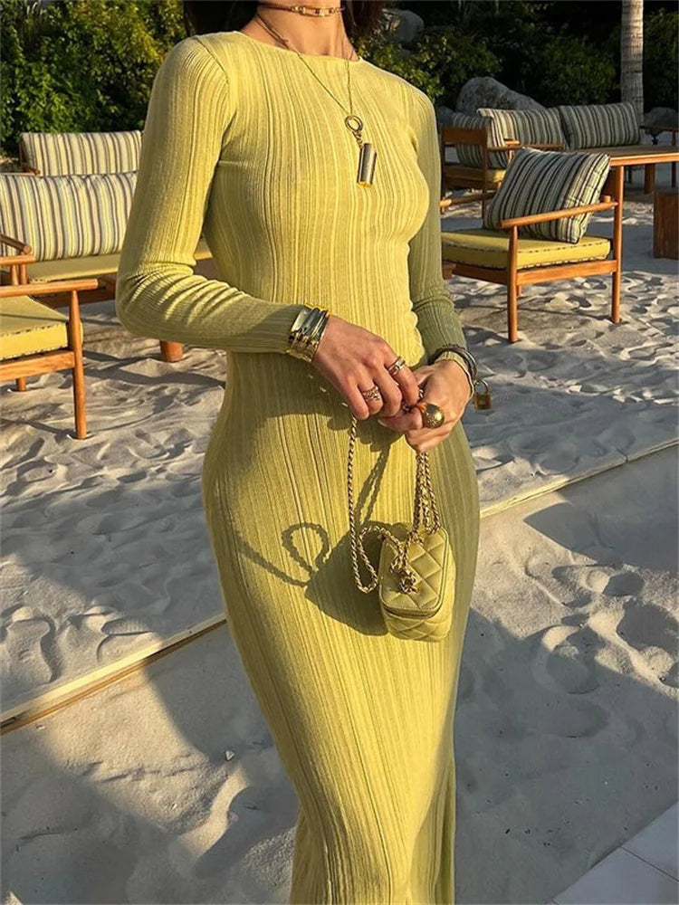 Ribbed Long Sleeve Maxi Dress