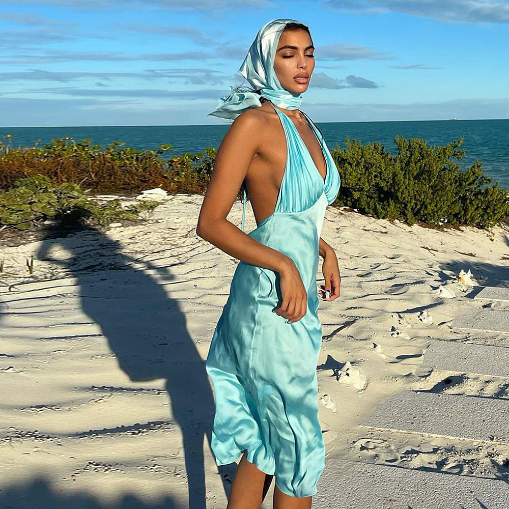 High Waist Midi Dress Strap Type Sleeveless V-neck One-Step Dress Pleated