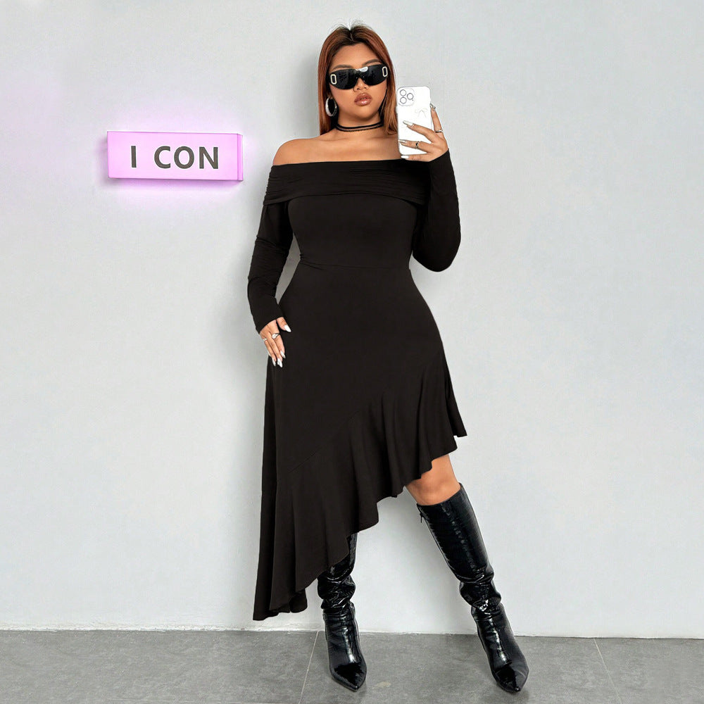 Elegant Dress Boat Collar Wooden Ear Midi Dress