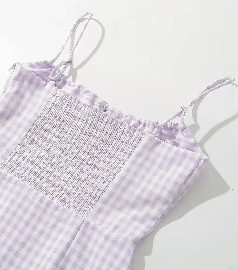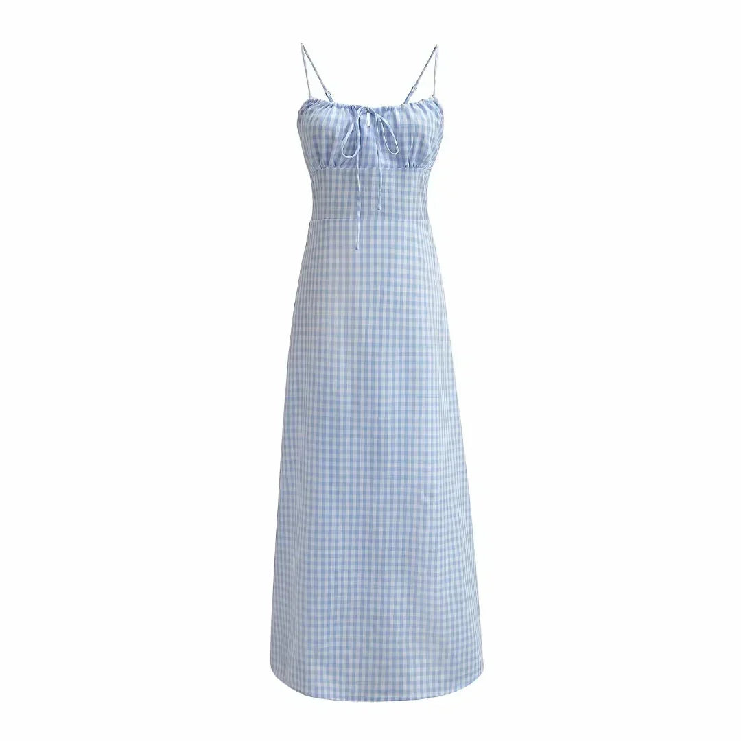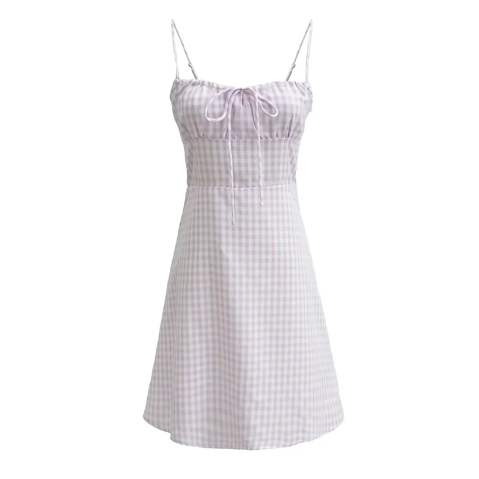 Spaghetti Strap Tie Up Plaid Pink Midi Dress
