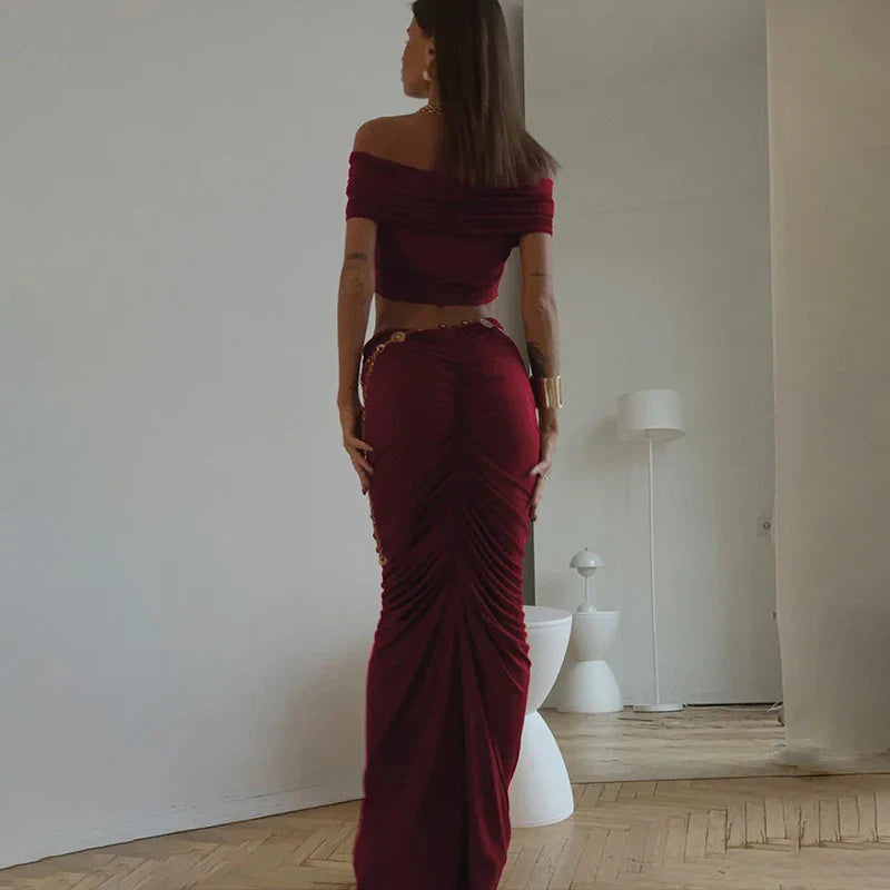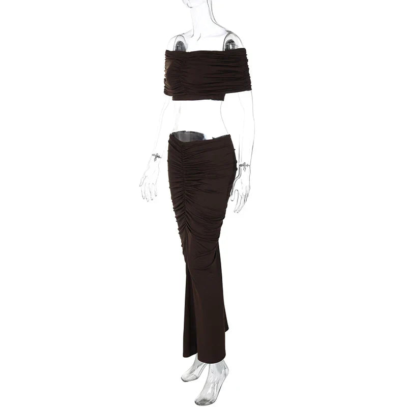 Off-shoulder Crop Top And Long Skirt Suit