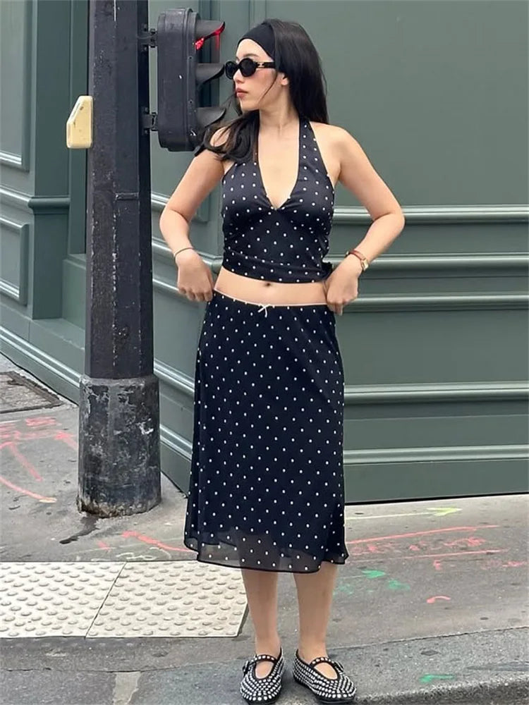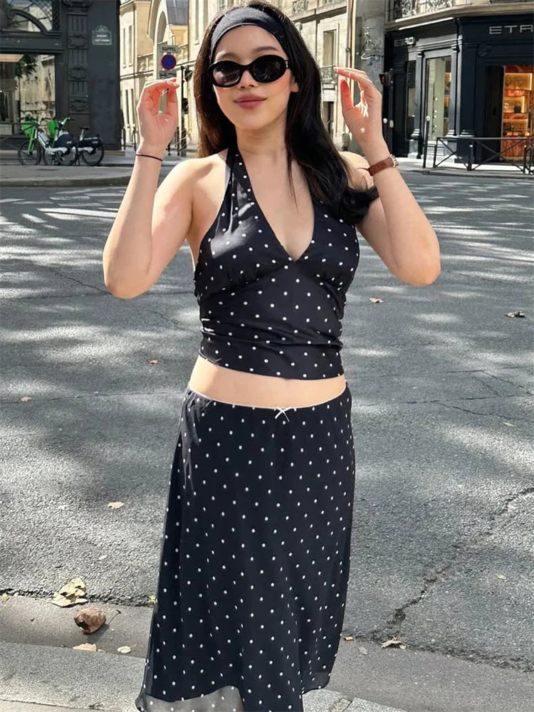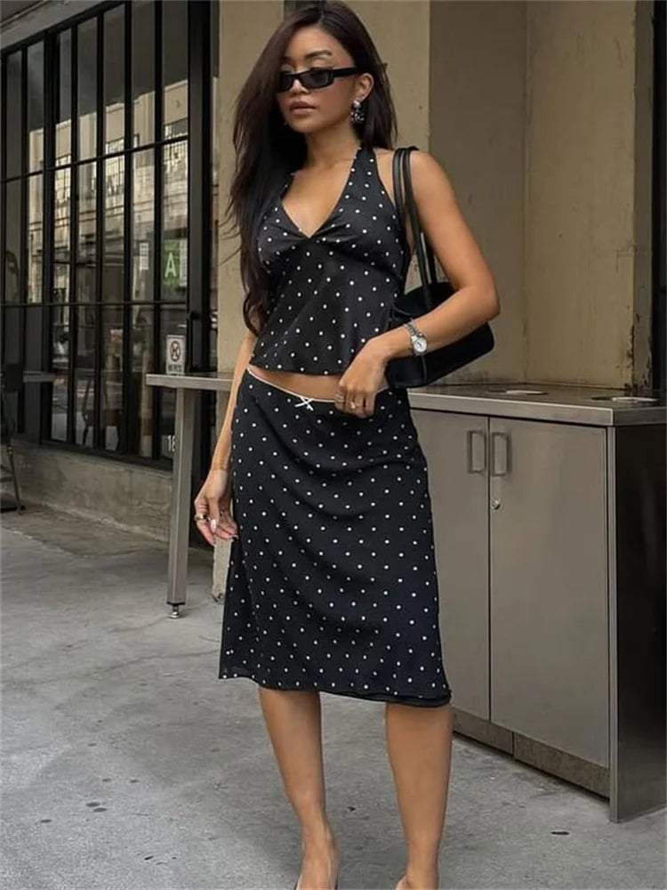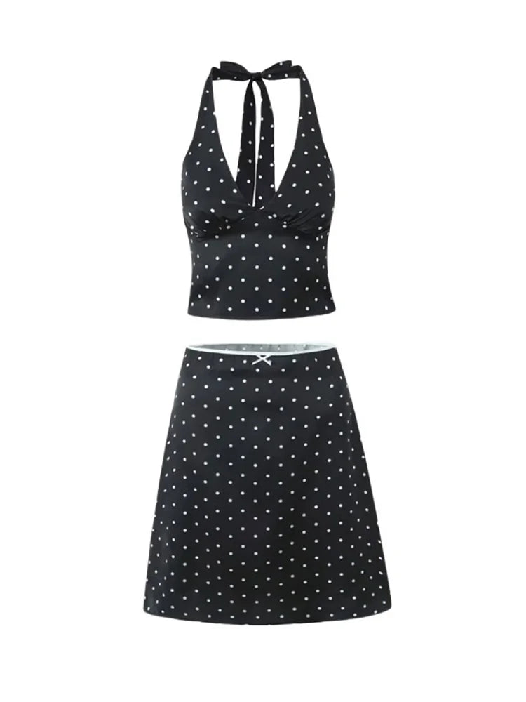 Lace-Up Sleeveless Top Bow Mini Skirt Outfits