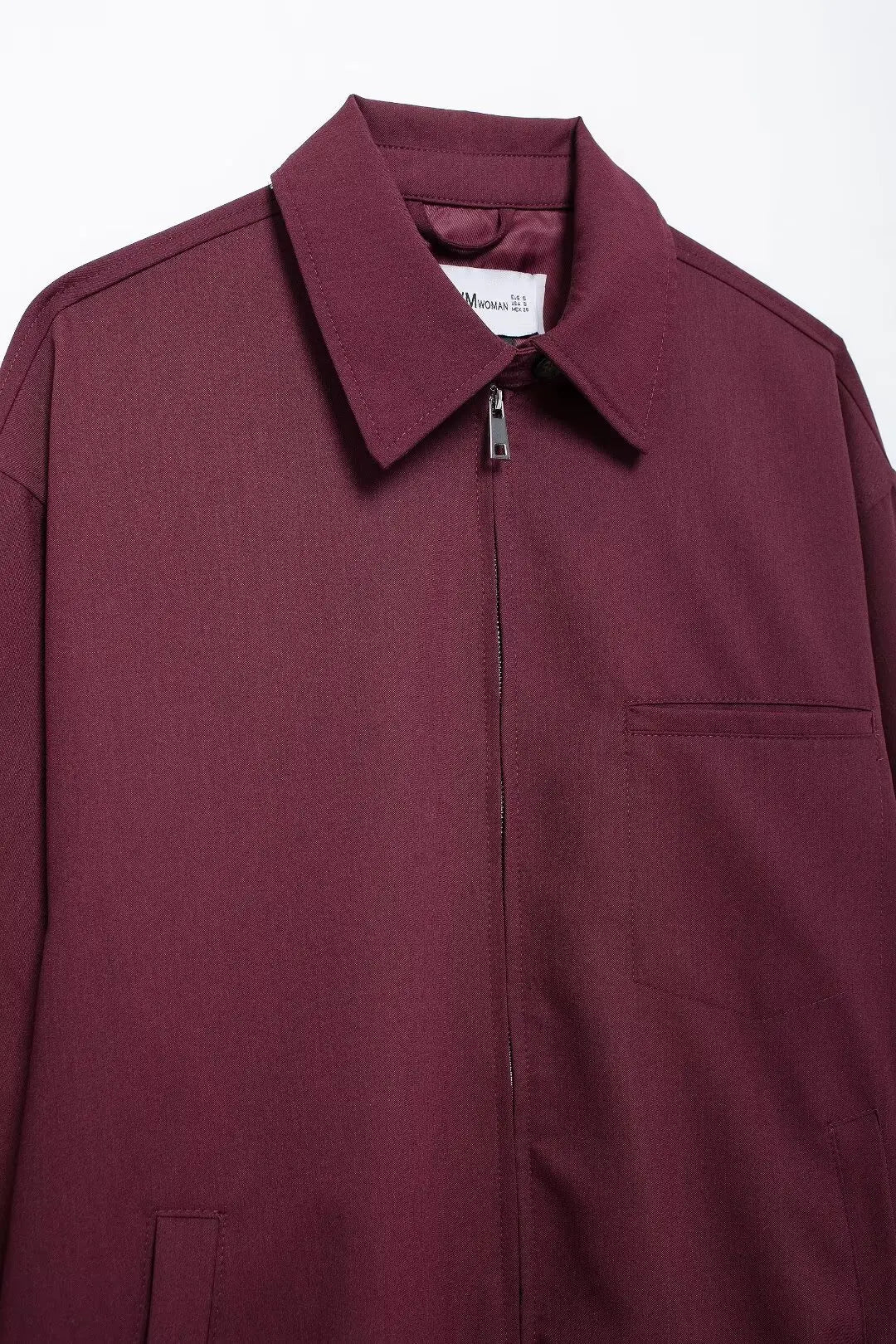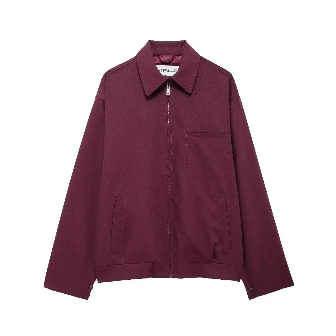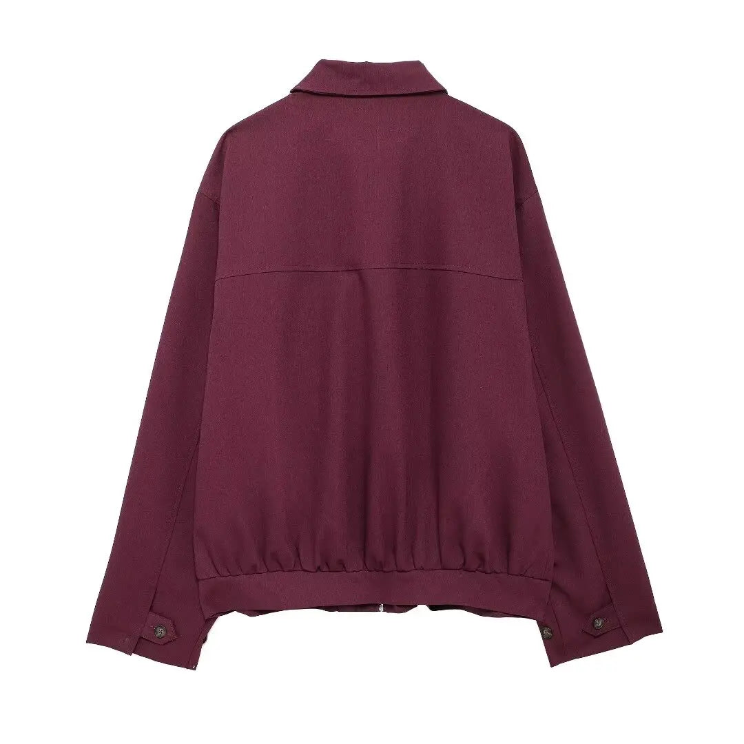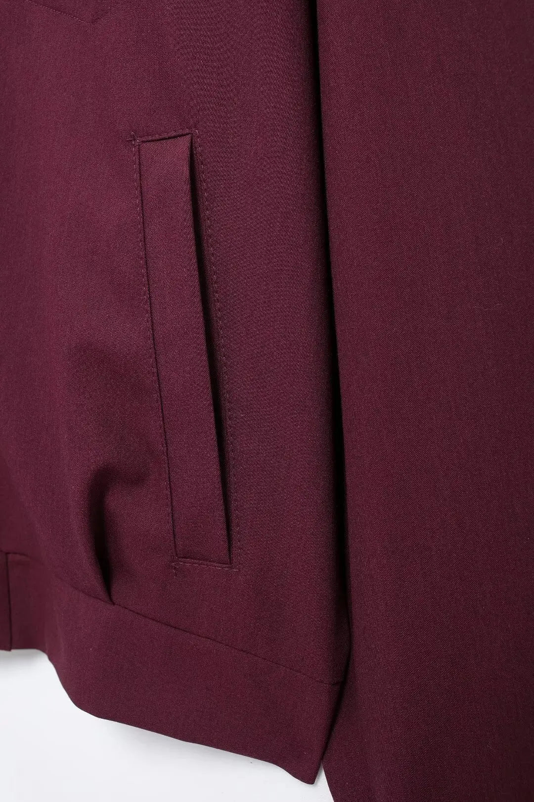 Zipper Lapel Burgundy Color Jacket and Skirt Suit