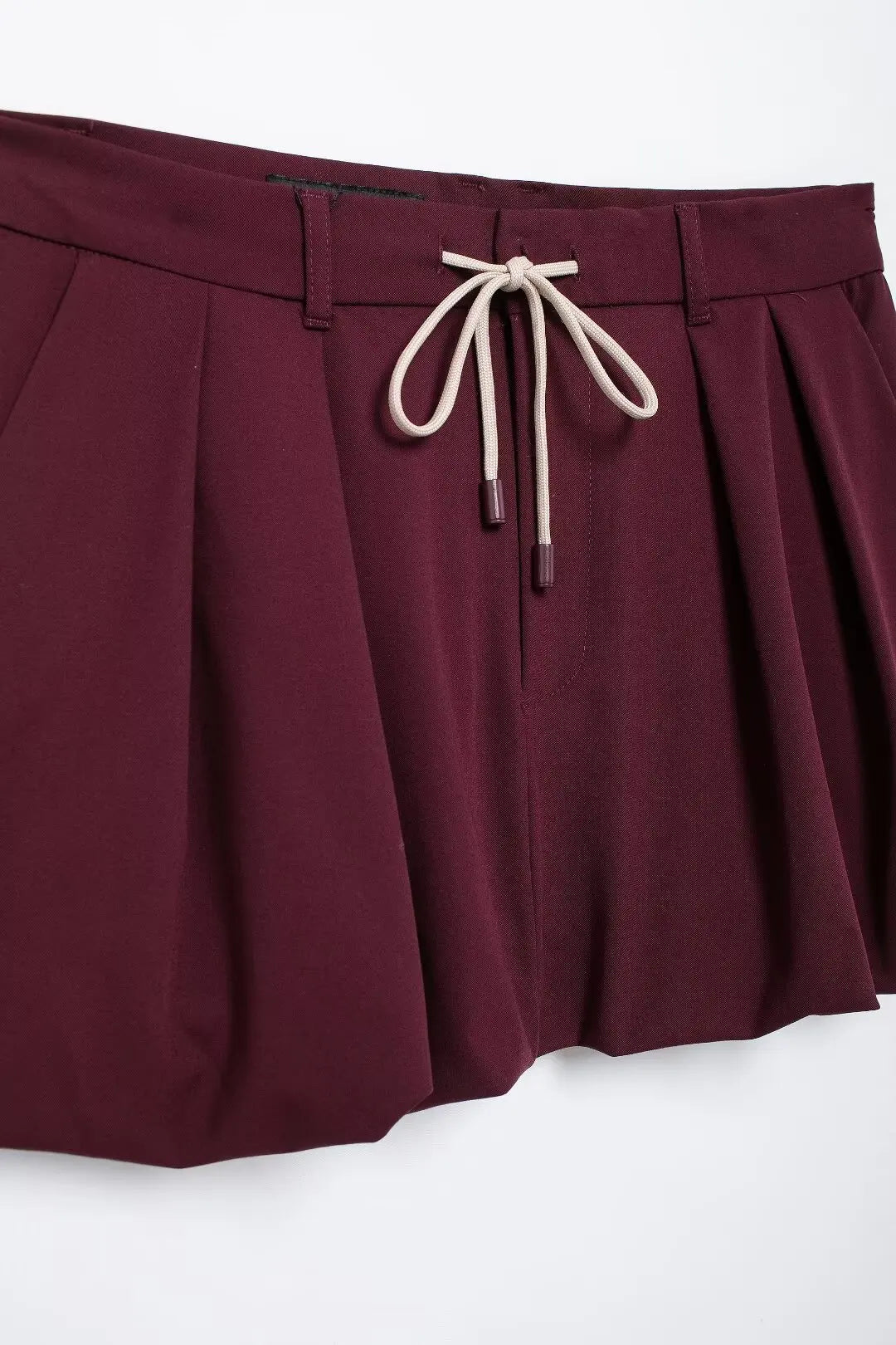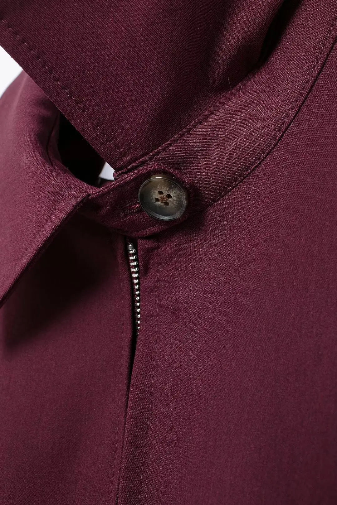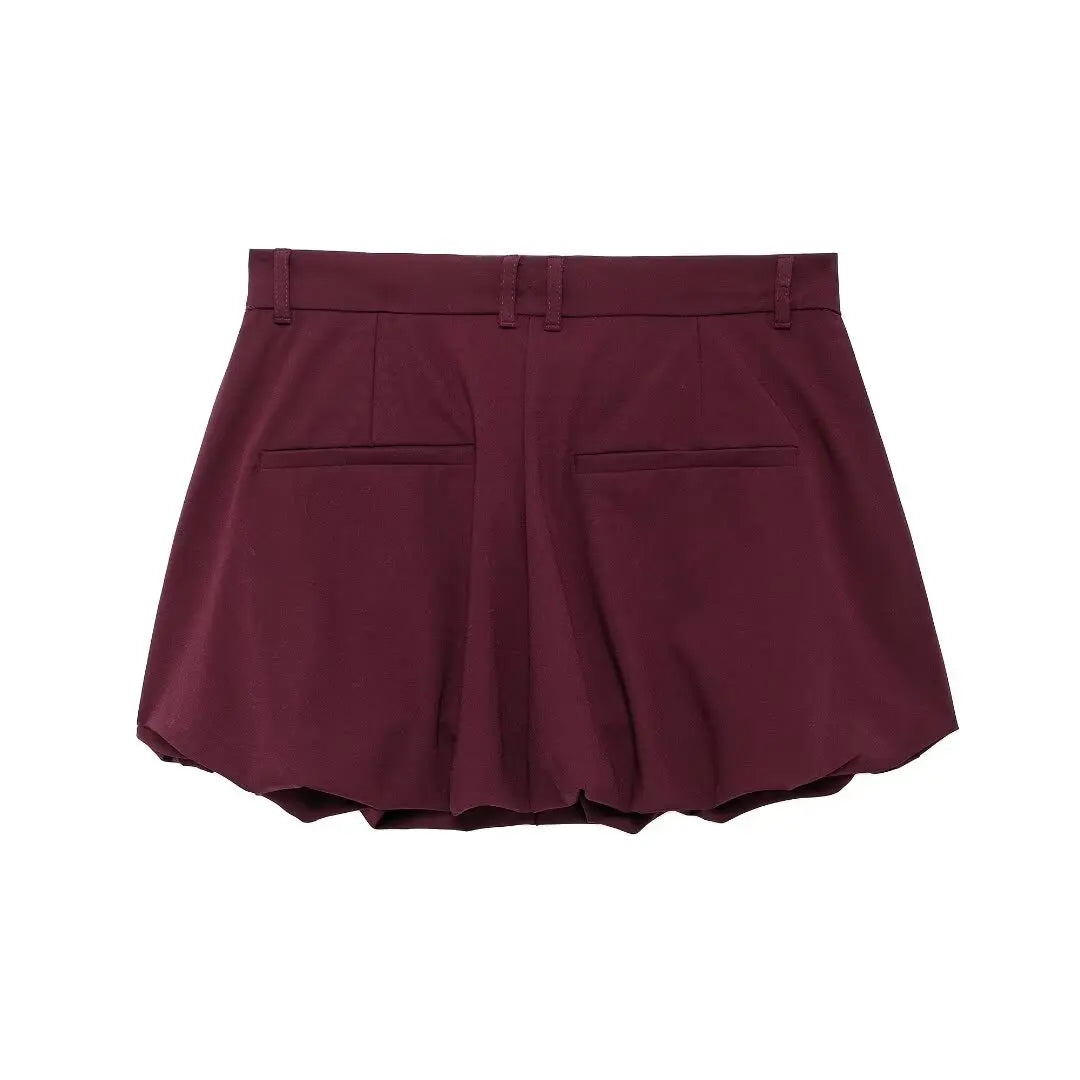 Zipper Lapel Burgundy Color Jacket and Skirt Suit