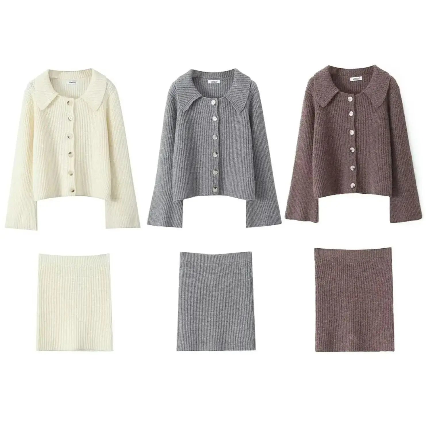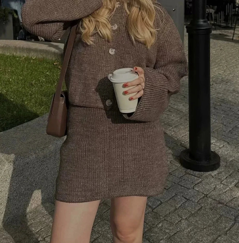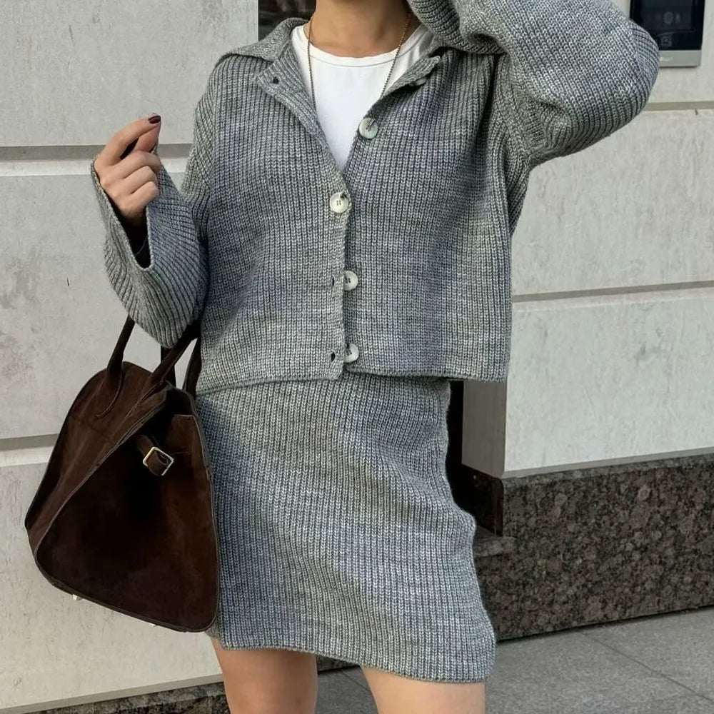 Lapel Cardigan Elastic Waist Mini Skirt Suits