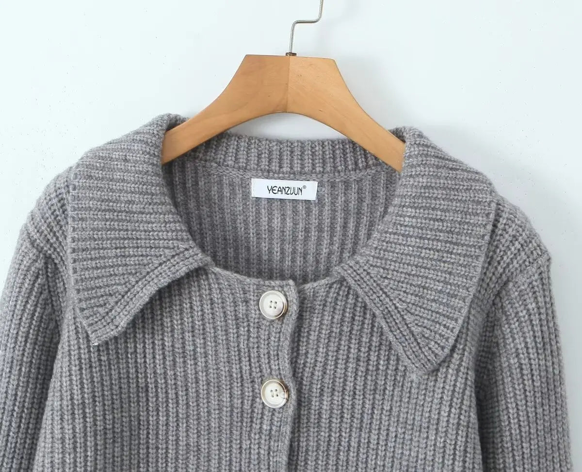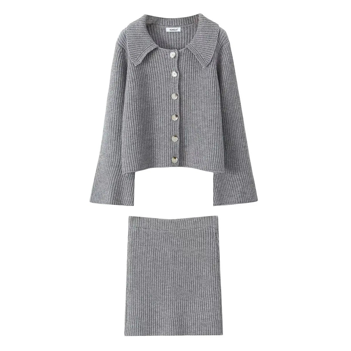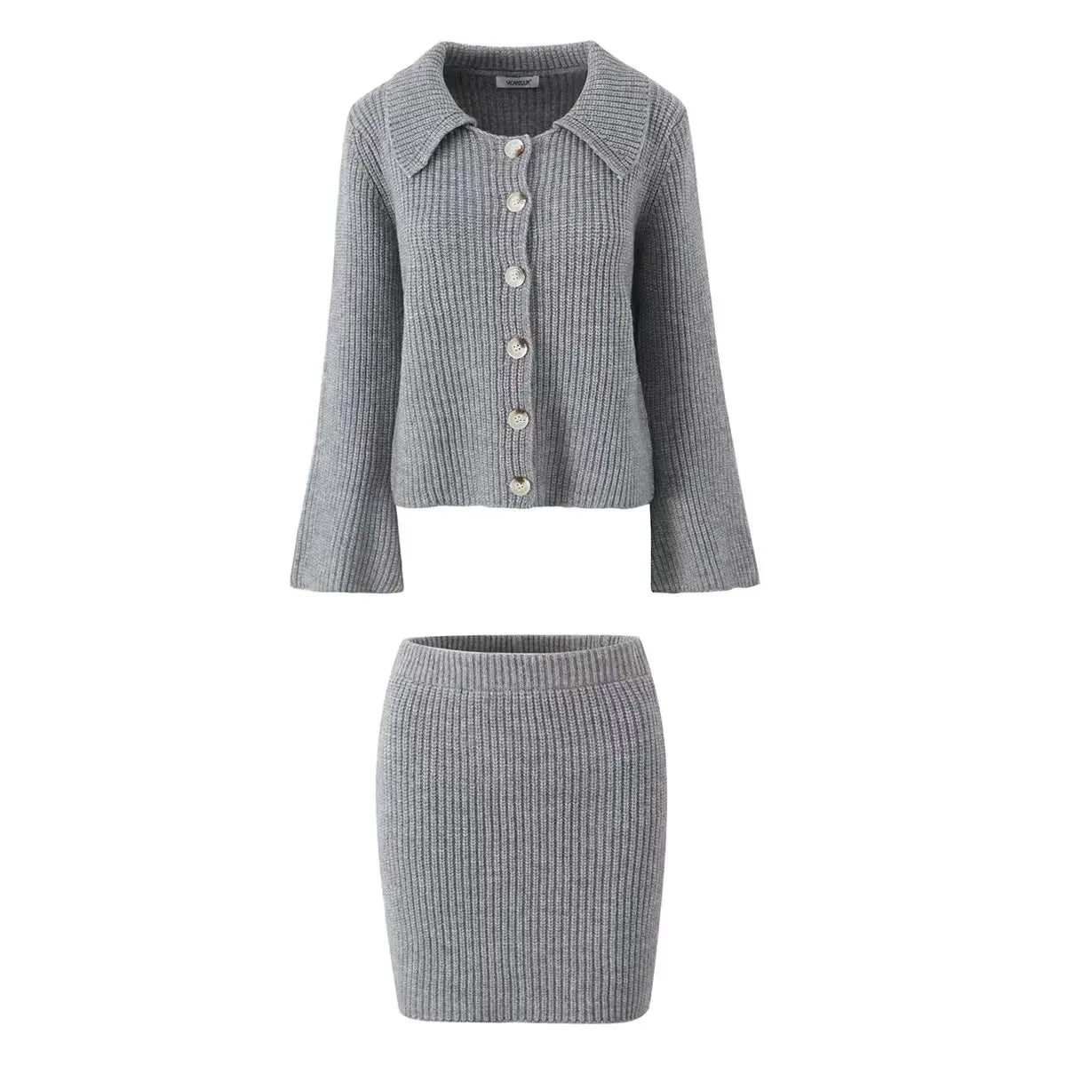 Lapel Cardigan Elastic Waist Mini Skirt Suits