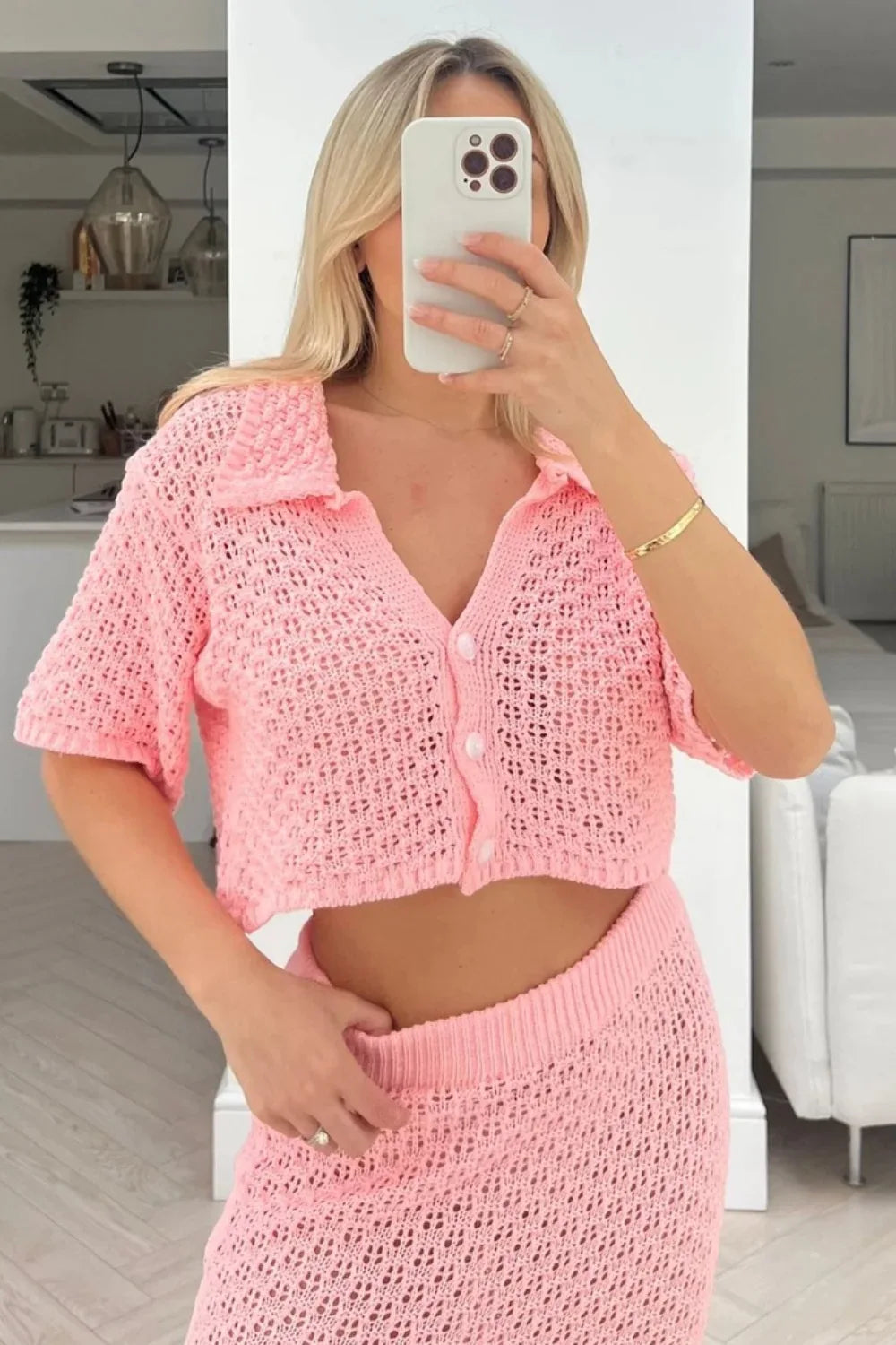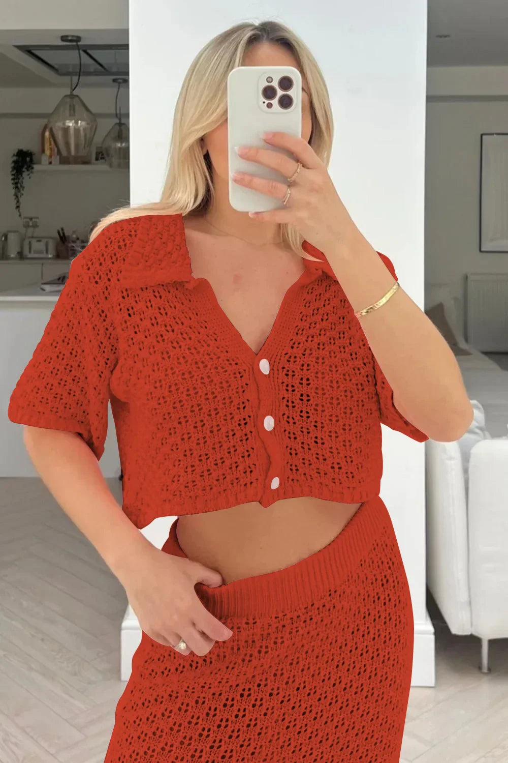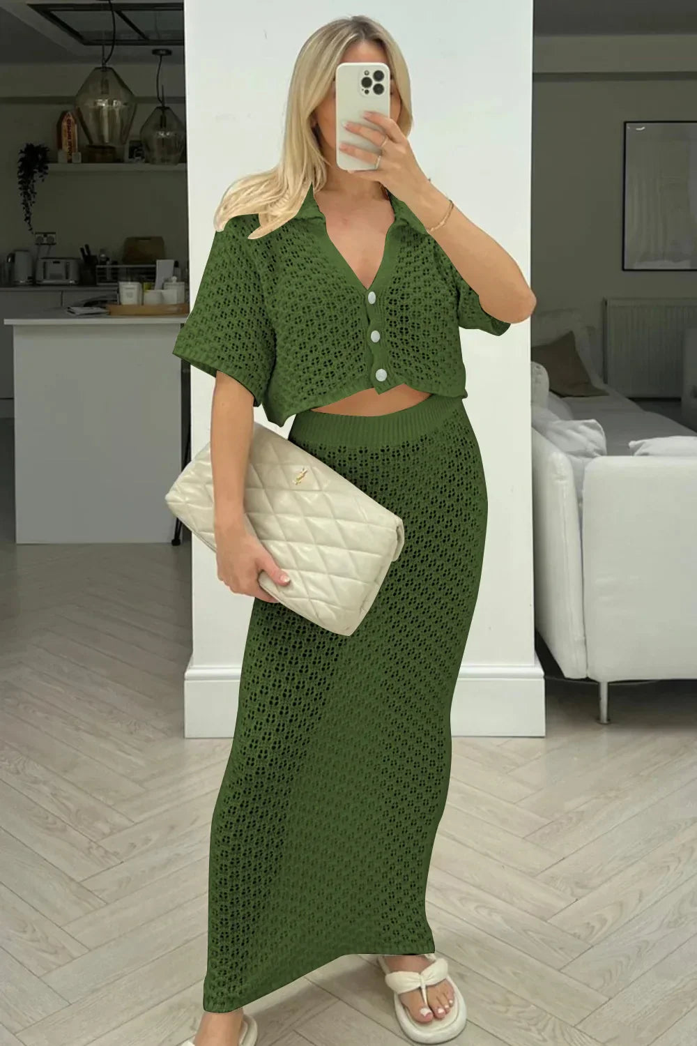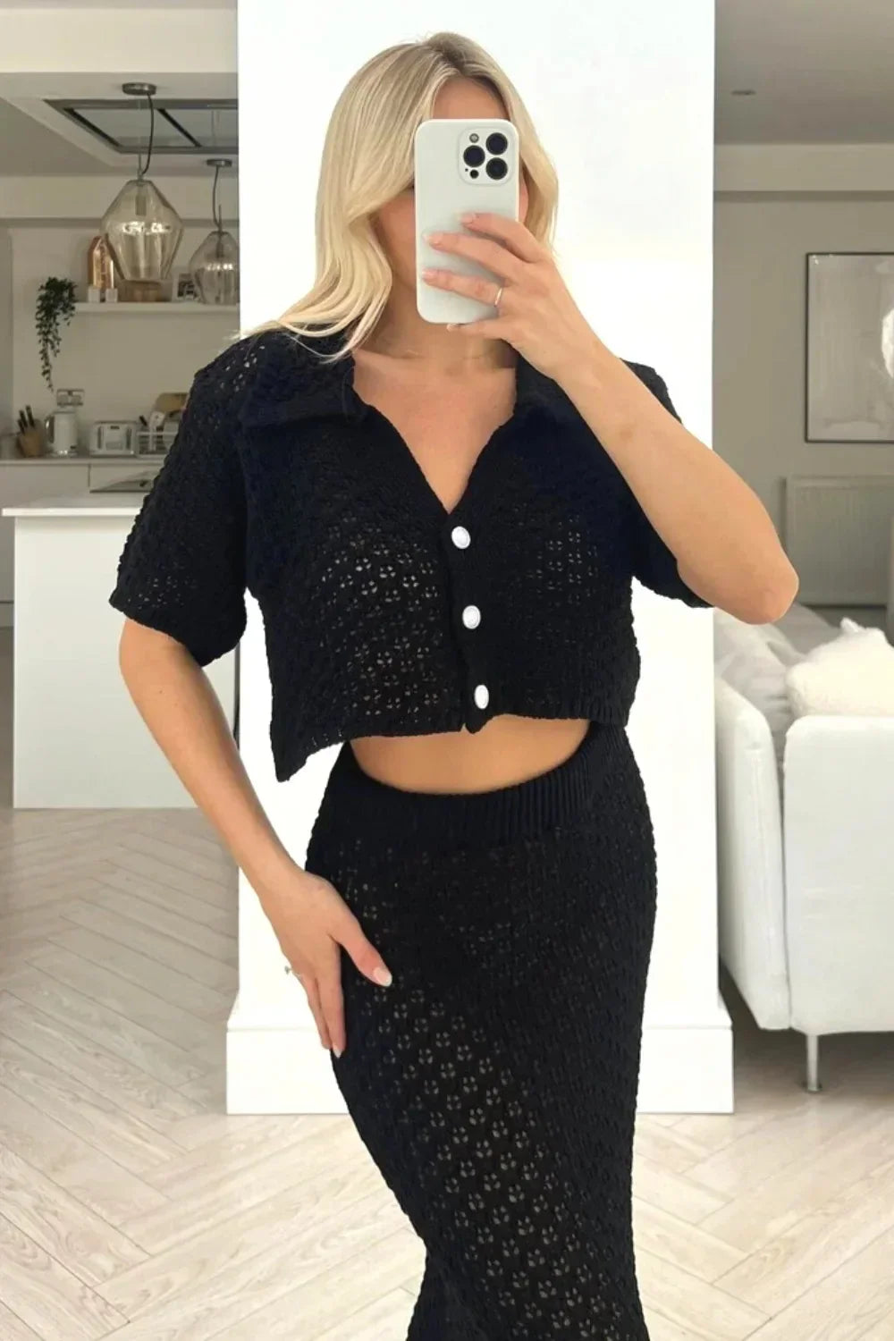 Knit Hollow Out Top and Long Skirt Suit