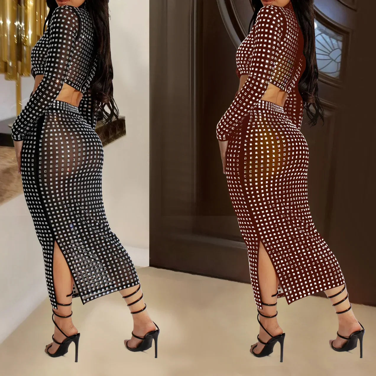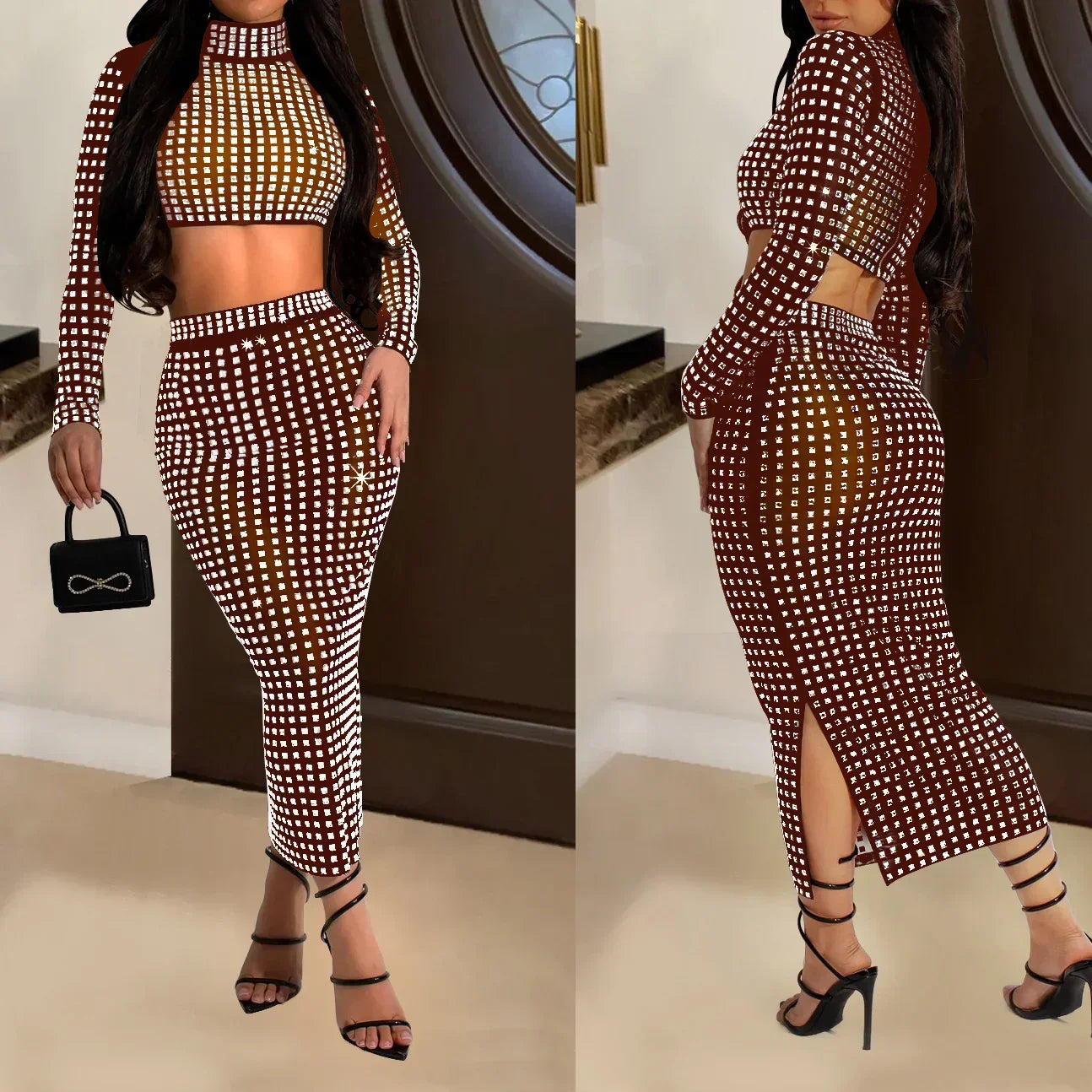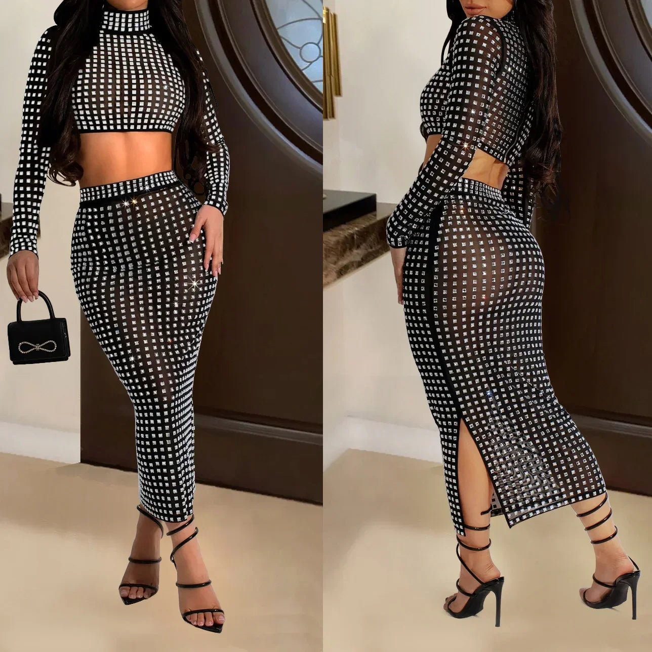 Rhinestone Strapless Top and Long Skirt Set