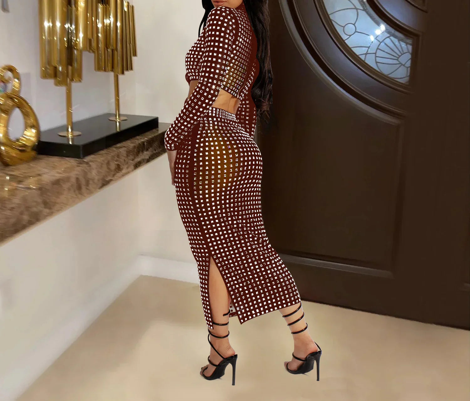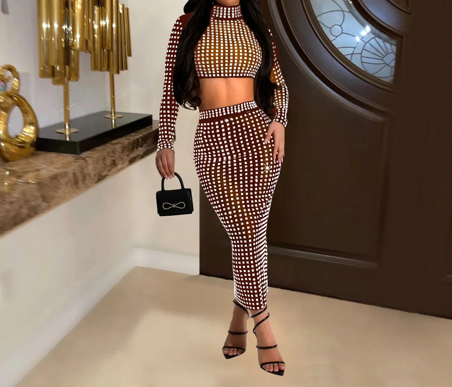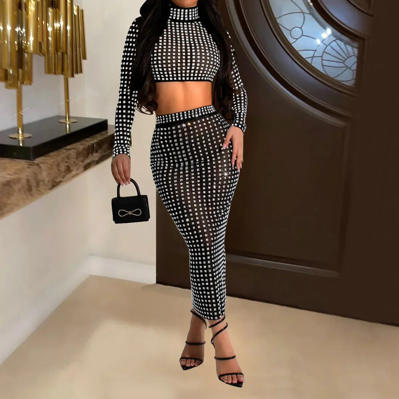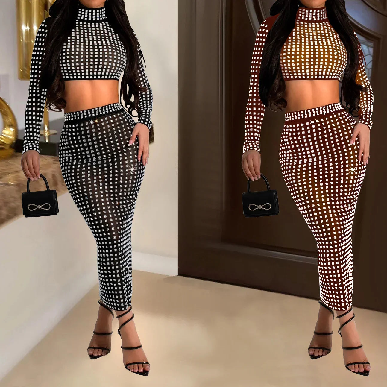 Rhinestone Strapless Top and Long Skirt Set