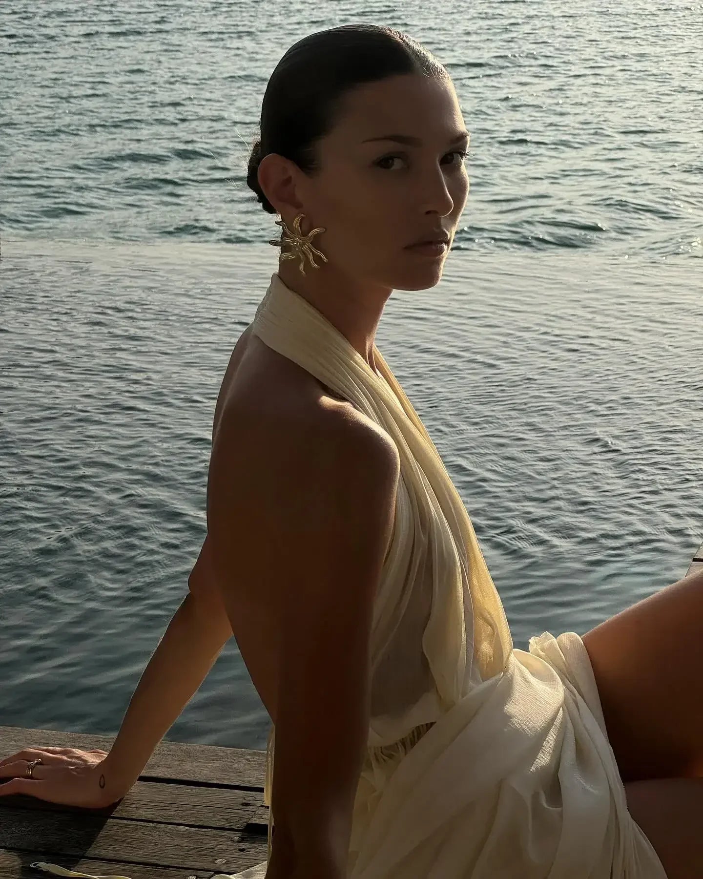 Halter Pleated Top Elastic Waist Long Skirt Suit