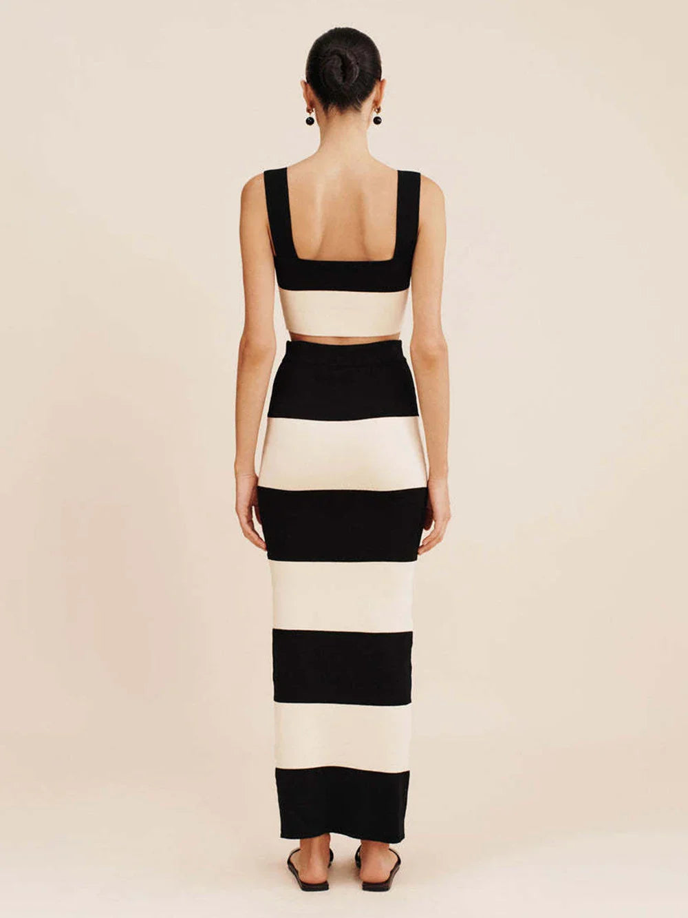 Striped Knitted Crop Top and Midi Skirt Suit