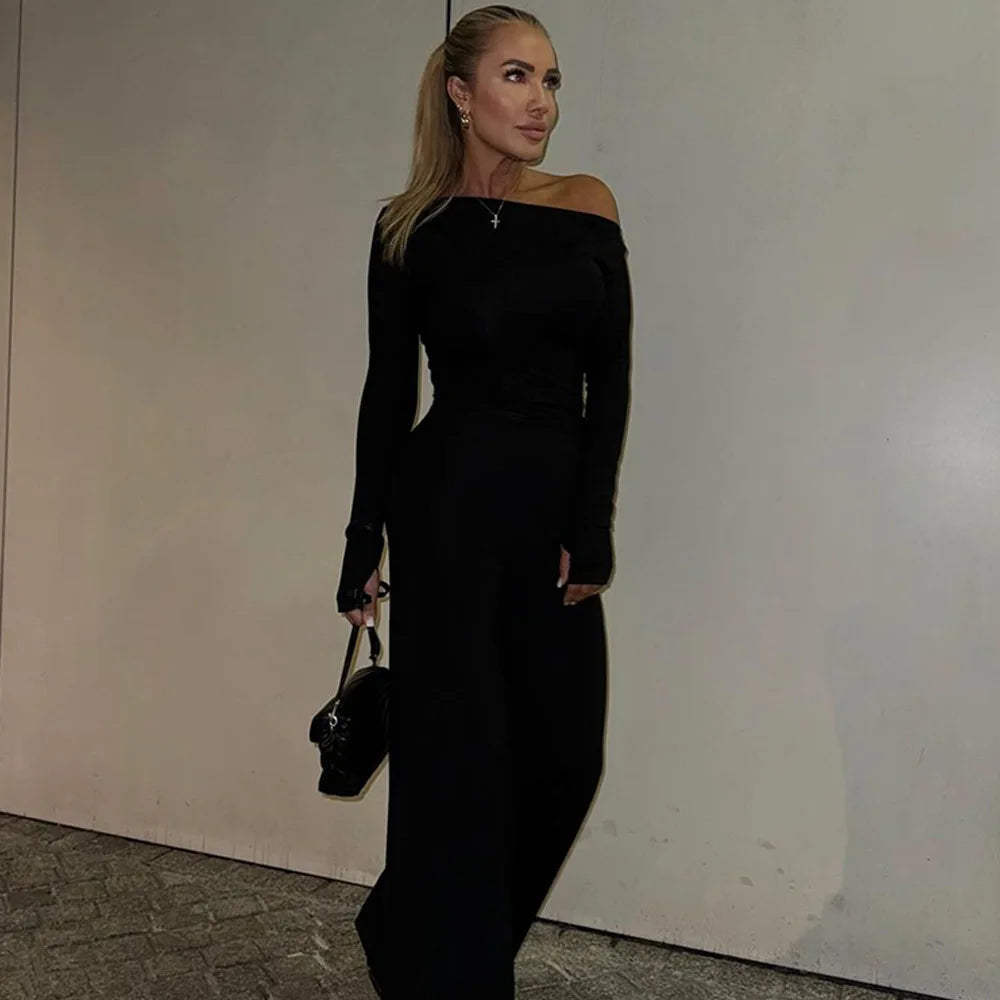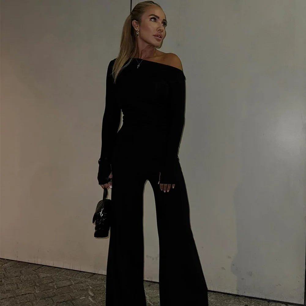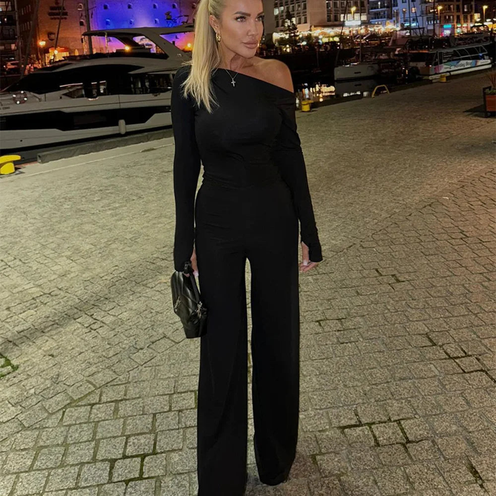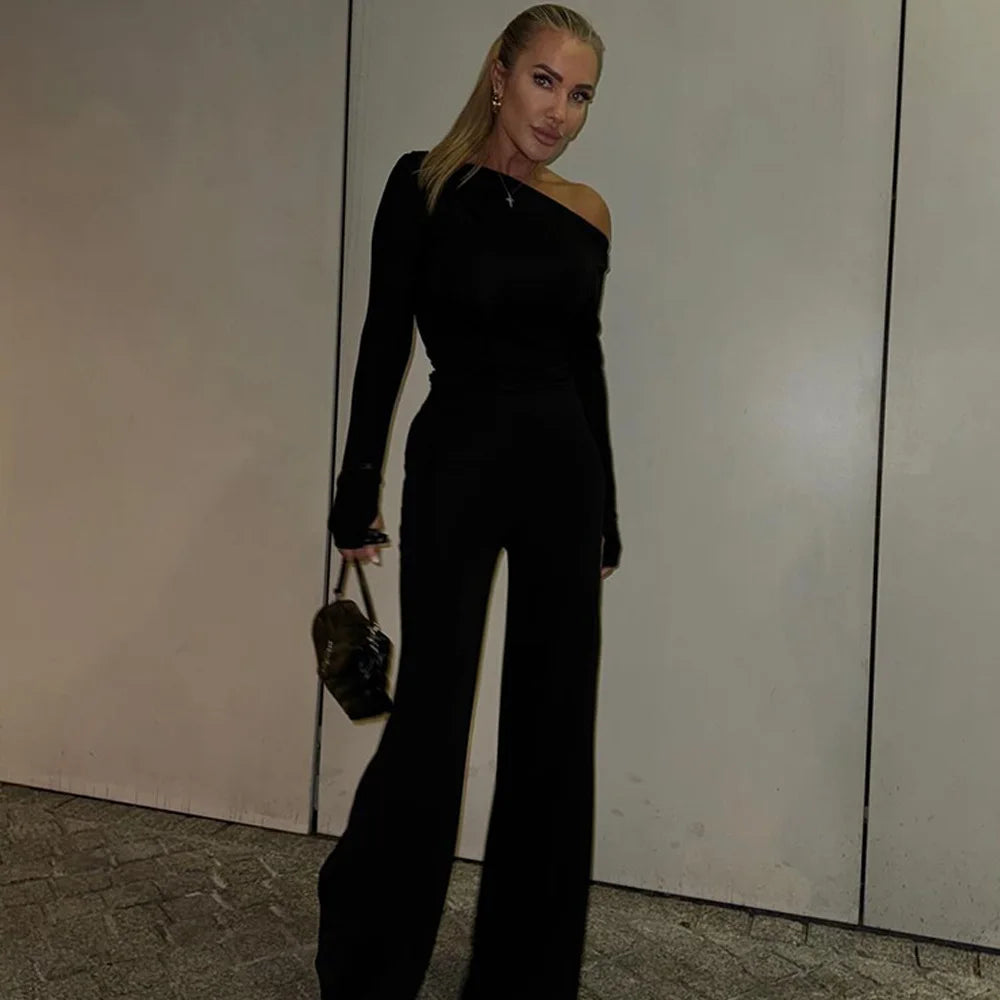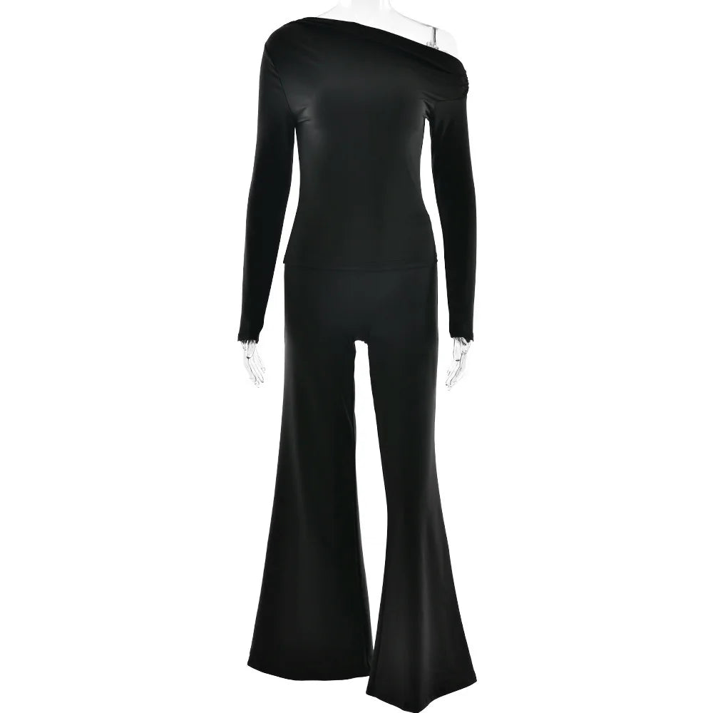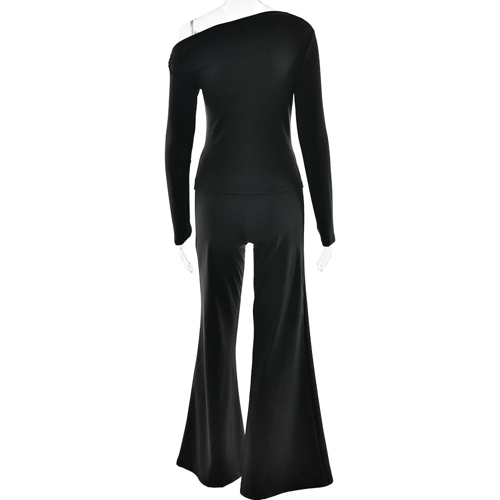 One Shoulder Flare Sleeve Top Long Pant Suit