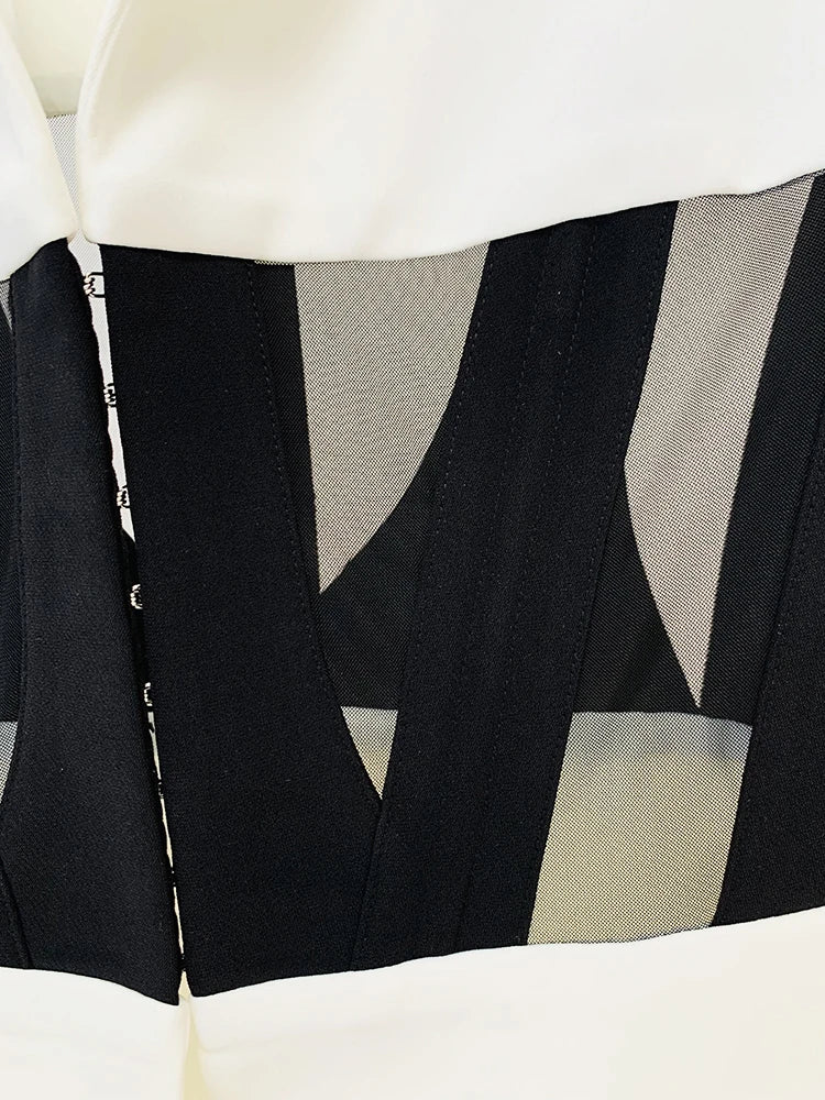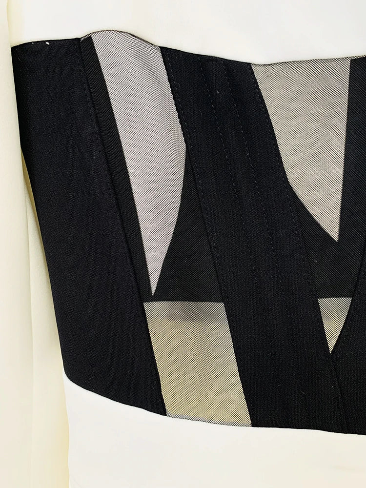 Perspective Gauze Patchwork Blazer Pencil Pant Suit
