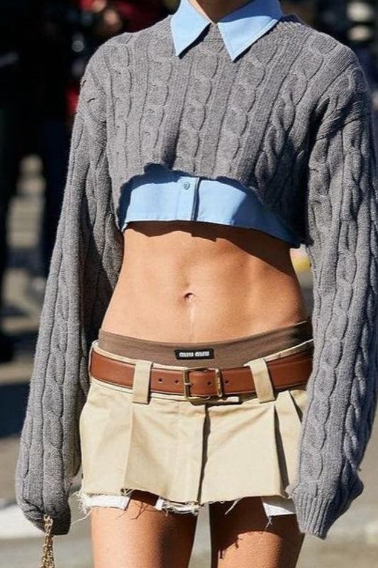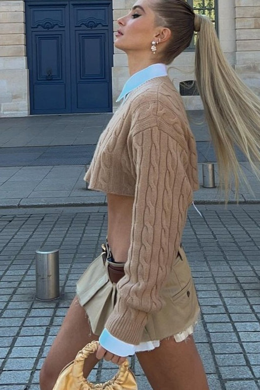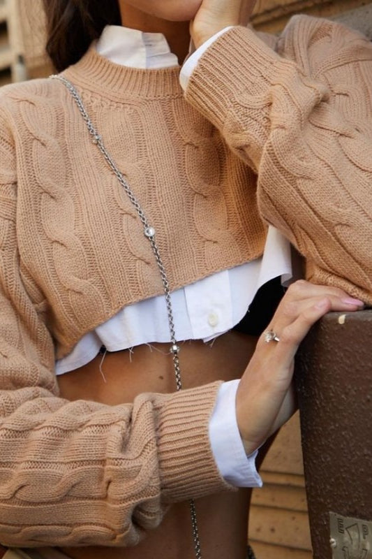 Layered Style Cable Knit Sweater