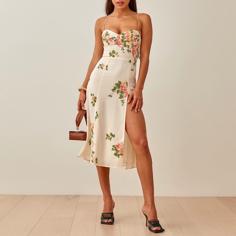 FashionSierra - Vintage Midi Dress Side High Slit Sexy Spaghetti Strap Dress