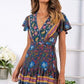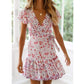 FashionSierra - Vintage Women Short Sleeve Wrap Boho Floral Mini Dress